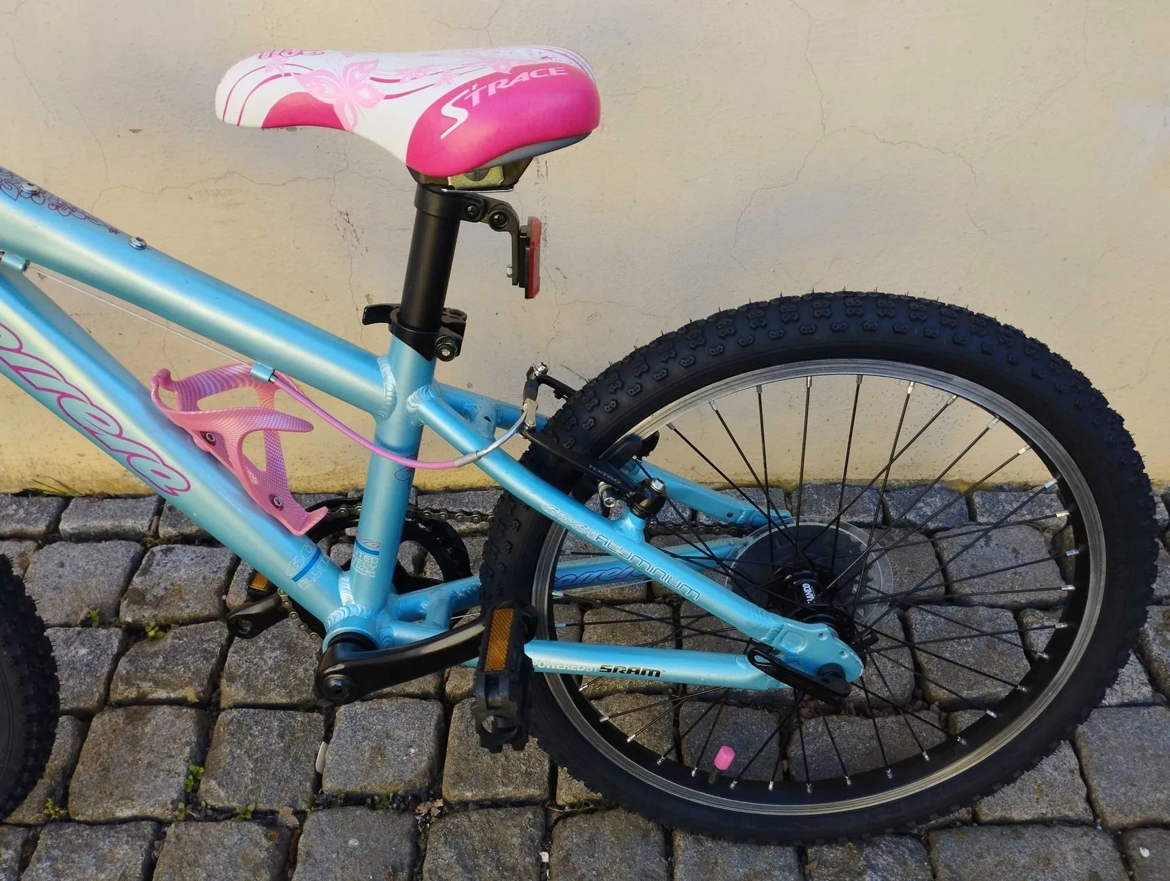 Průměr kol 20" Rám lehký 6061 hliníkový Velikost kol 20'' Barvy modro-růžová Vidlice RST Capa T8 50mm zdvih Řazení SRAM 3.0 Přehazovačka SRAM 7-rychl. Brzdy V-brzdy Tektro, hliníkové Ráfky hliníkové Sedlovka hliníková Říditka hliníkové Kliky hliníkové