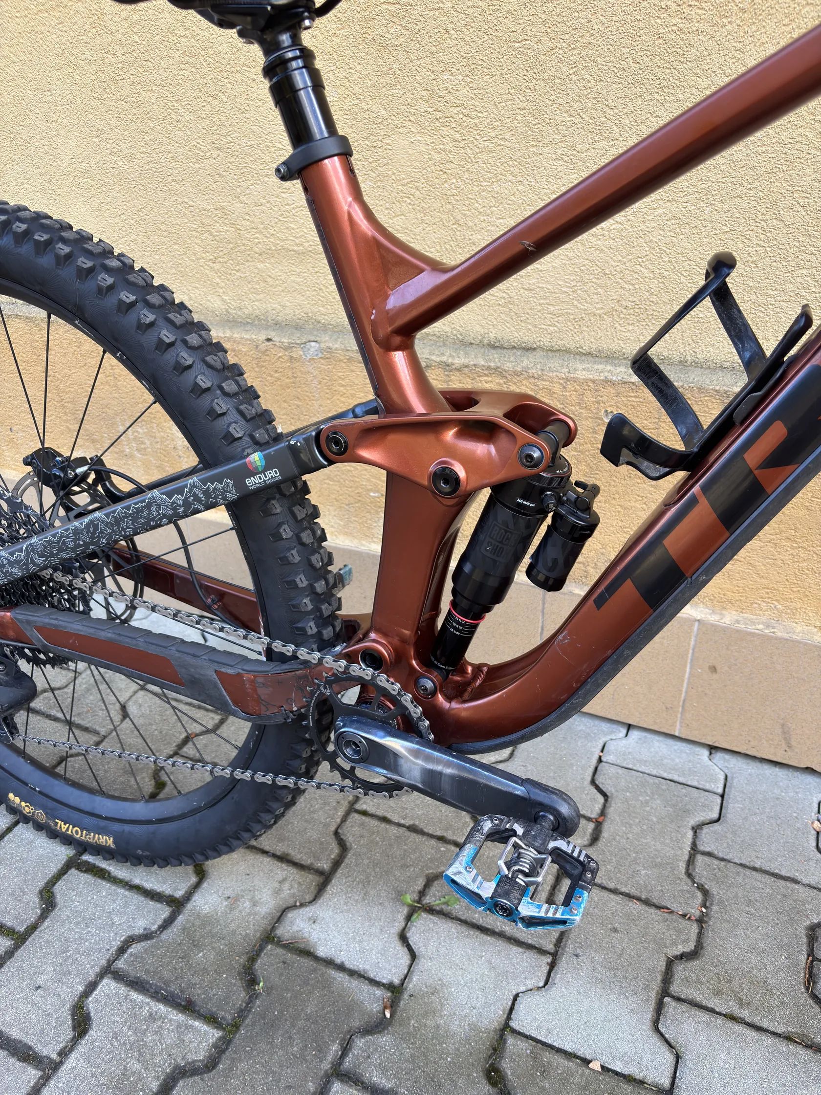- Rám: Trek Slash 8 Gen 5, hliník, zdvih 160 mm