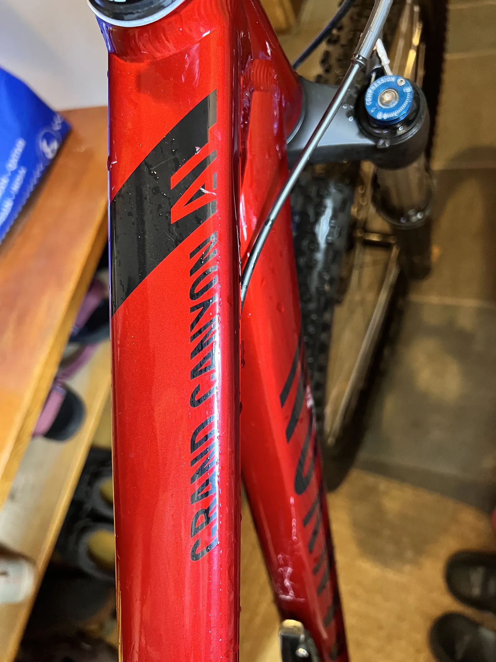 Prodám Grand Canyon AL 5.0. Naježděno málo, krásná vínová barva (lava red). Velikost rámu M. Lehké oděrky hlavně z přepravy kola. Ovládání vidlice na řidítkách. Ježděno ženou, silnice a lesní cesty. Kupované přímo od Canyonu, první majitel. PC: 23000,-.