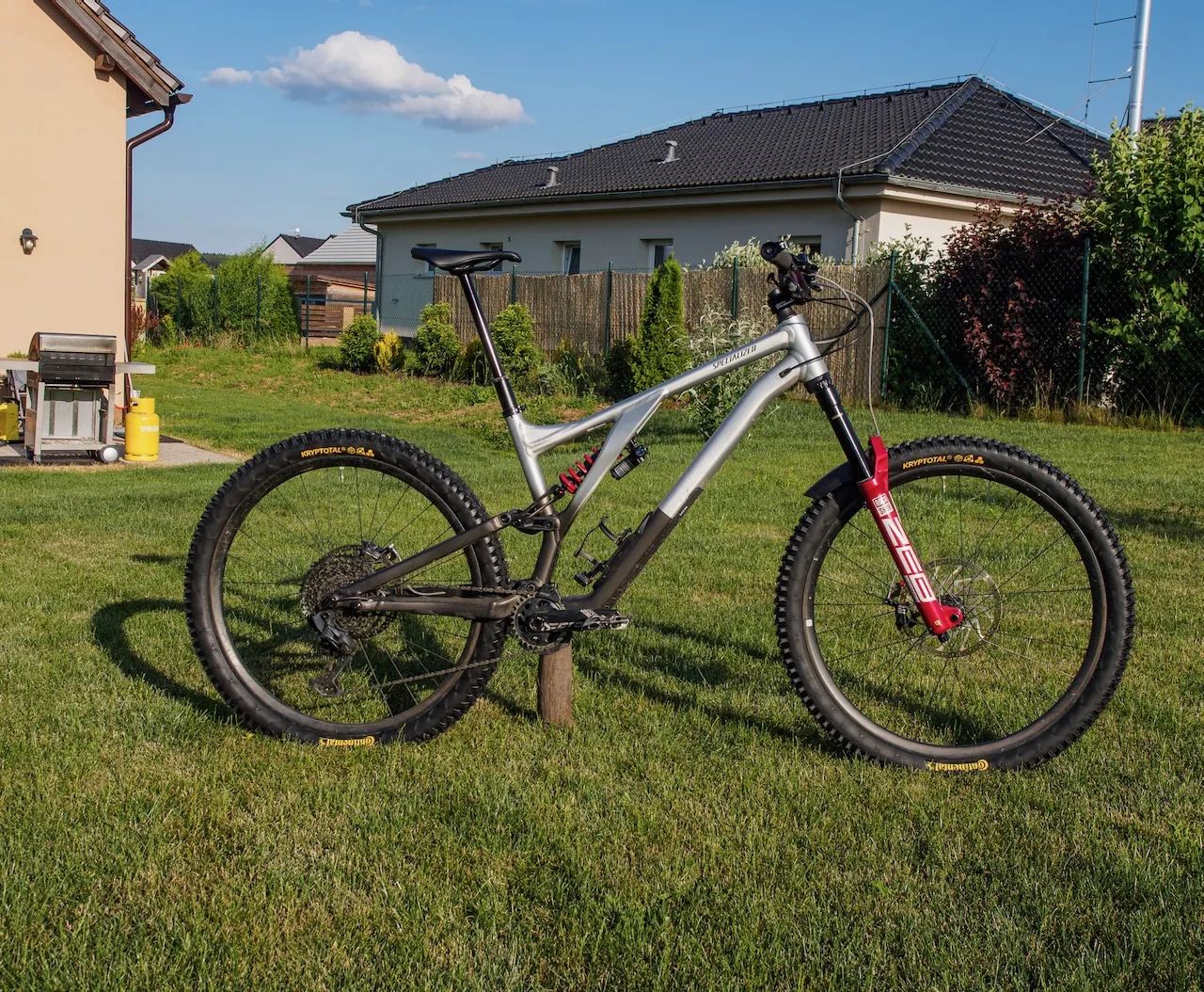 Specialized Stumpjumper Evo, hliníkový, vel. S6 (188cm +) Obecně za 2 sezony (kupováno nové a hojně přestavěno) najeto 800 km. Prodávám z těžkým srdcem z časových důvodů - na trailech jsem max. 1x za mesic a akorat na me smutne kouka z kouta…