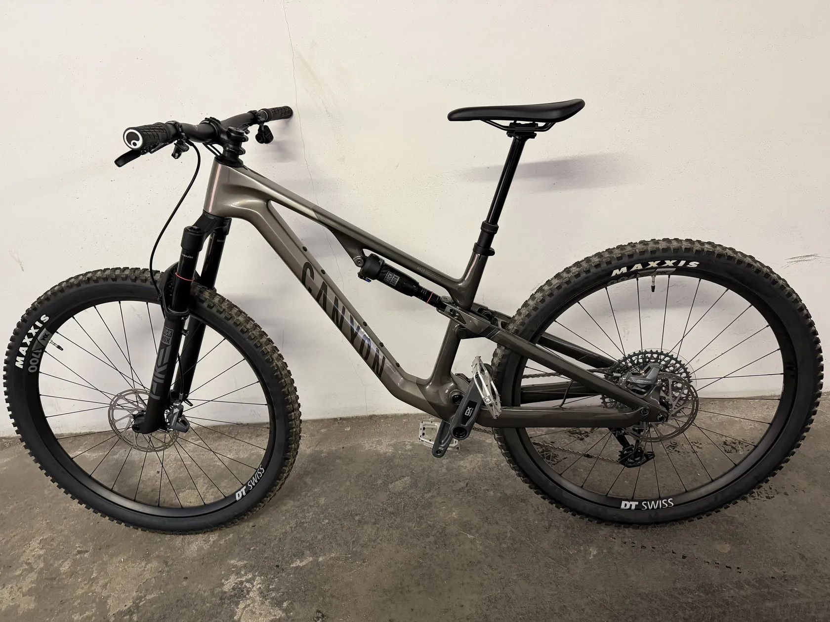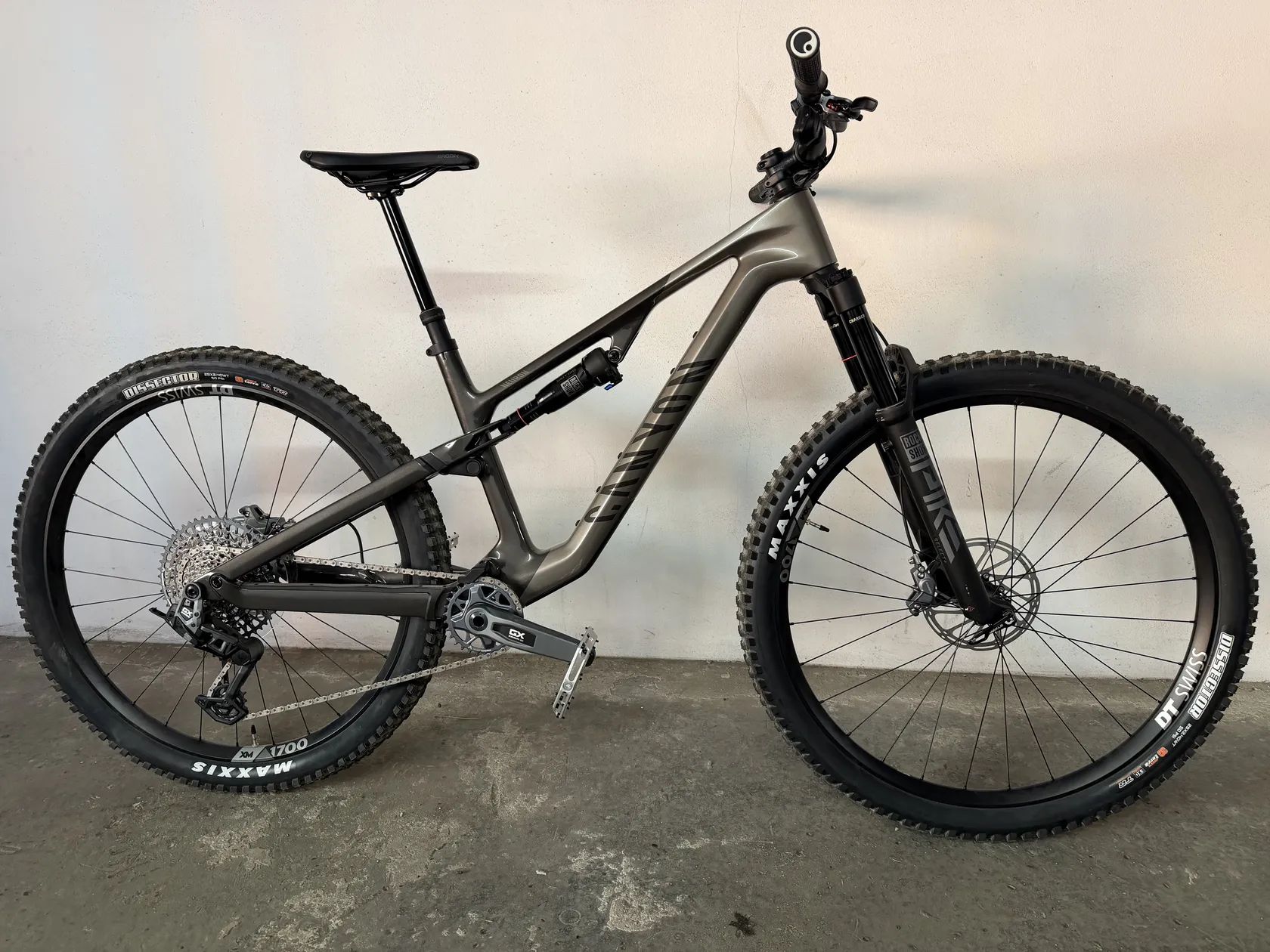 Přední kolo DT Swiss XM 1700 Rozměry Osy: 15x110 mm Typ Uchycení Kotouče: Center Lock Výška ráfku: 21 mm Vnitřní šířka: 30 mm Weight: 895 g Zadní kolo DT Swiss XM 1700 Spline Rozměry Osy: 12x148 mm Weight: 984 g Plášť Maxxis Dissector Šířka: 2.4" Weight: 948 g Pevná osa Canyon Quixle Through Axle QR 148x12 Rozměry Osy: 12x148 mm Kokpit