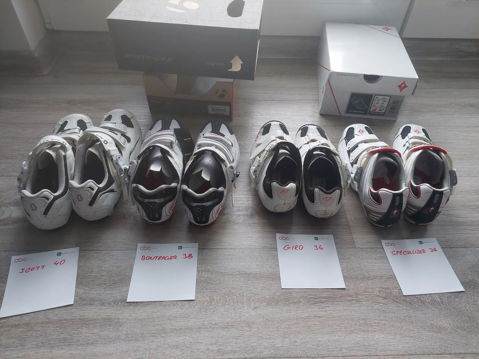 Giro Manta vel. 36 včetně kufrů Shimano - 700,-- Kč Scott Pro vel. 40 pouze párkrát jeté včetně kufrů Shimano - 1000,-- Kč Bontrager RXL Carbon vel. 38 karbonové nové včetně krabice - 1400,-- Kč Specialized Pro MTB WMN vel. 36 pouze párkrát jeté včetně nepoužitých hrotů do bláta a klíče - 1200,-- Kč V případě zájmu prosím o kontakt sms nebo e-mailem, zavolám zpět.