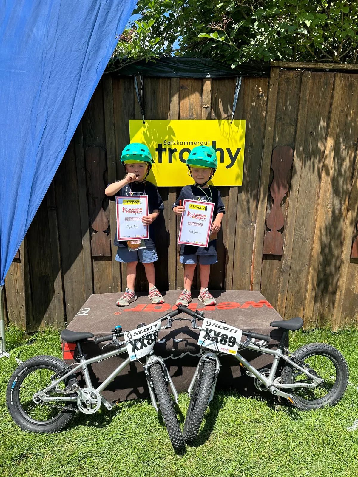 Kluci začínali jako „mimina“ na klasických plastových motorkách. Pak přišlo odrážedlo Funny Wheels Rider – první balans, první pády, první „já to zvládnu sám“. Následovalo odrážedlo Kellys Kiru Race, kde se díky stupátku učili lepší rovnováze, směru jízdy i práci s brzdami… a hlavně chuti jezdit dál.