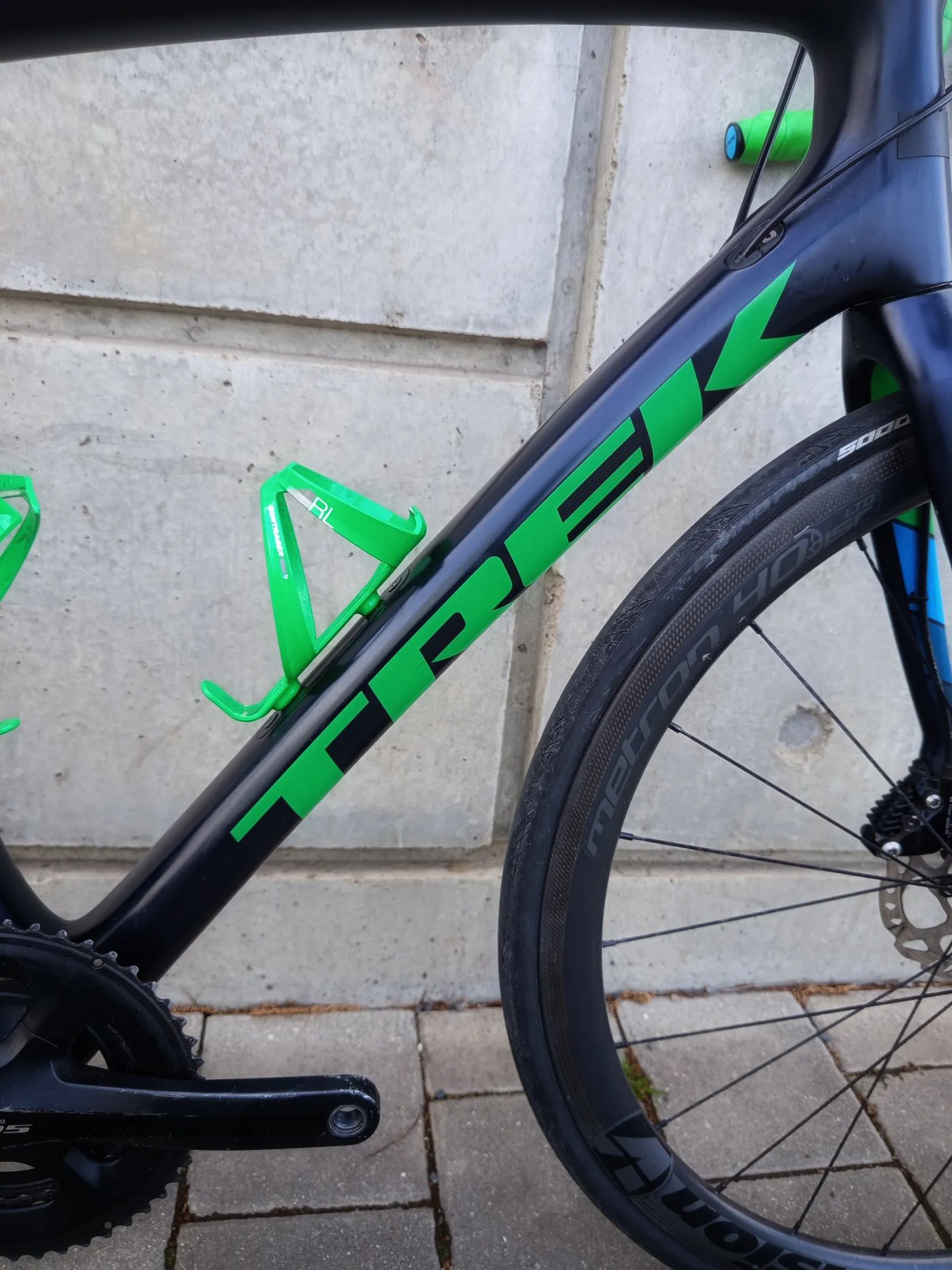 Trek SL5 má vyváženou sportovní geometrii – není extrémně závodní, ale rozhodně není ani „turistický“. Nabízí jistotu, stabilitu a komfort, který oceníš jak při svižných trénincích, tak na delších vyjížďkách.