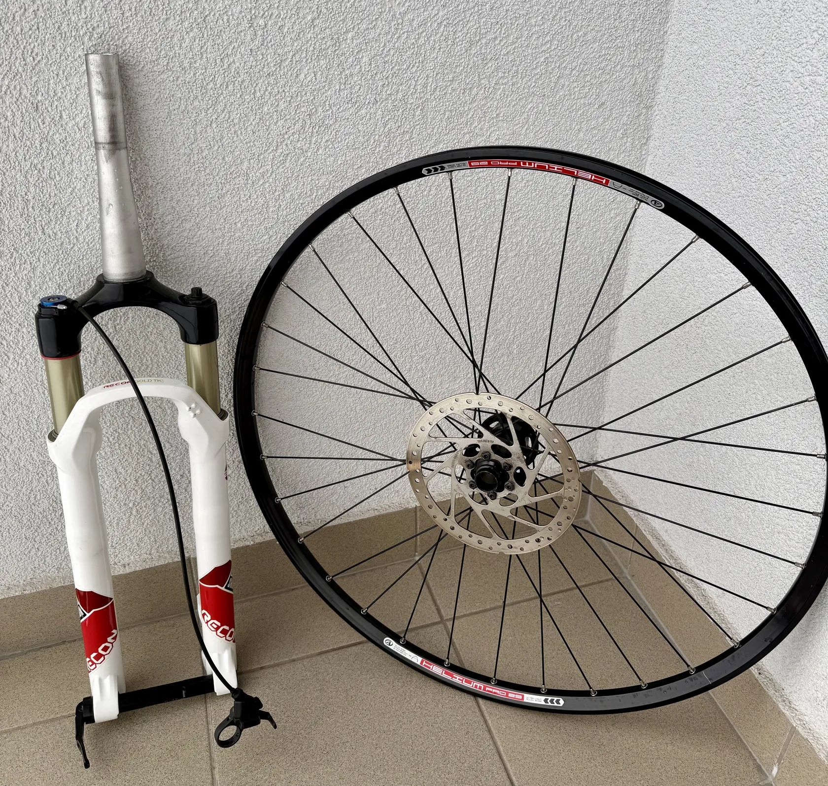 Prodám vzduchovou vidlici Rock Shox recon gold TK pro kola 29” včetně pevné osy a předního kola viz foto.