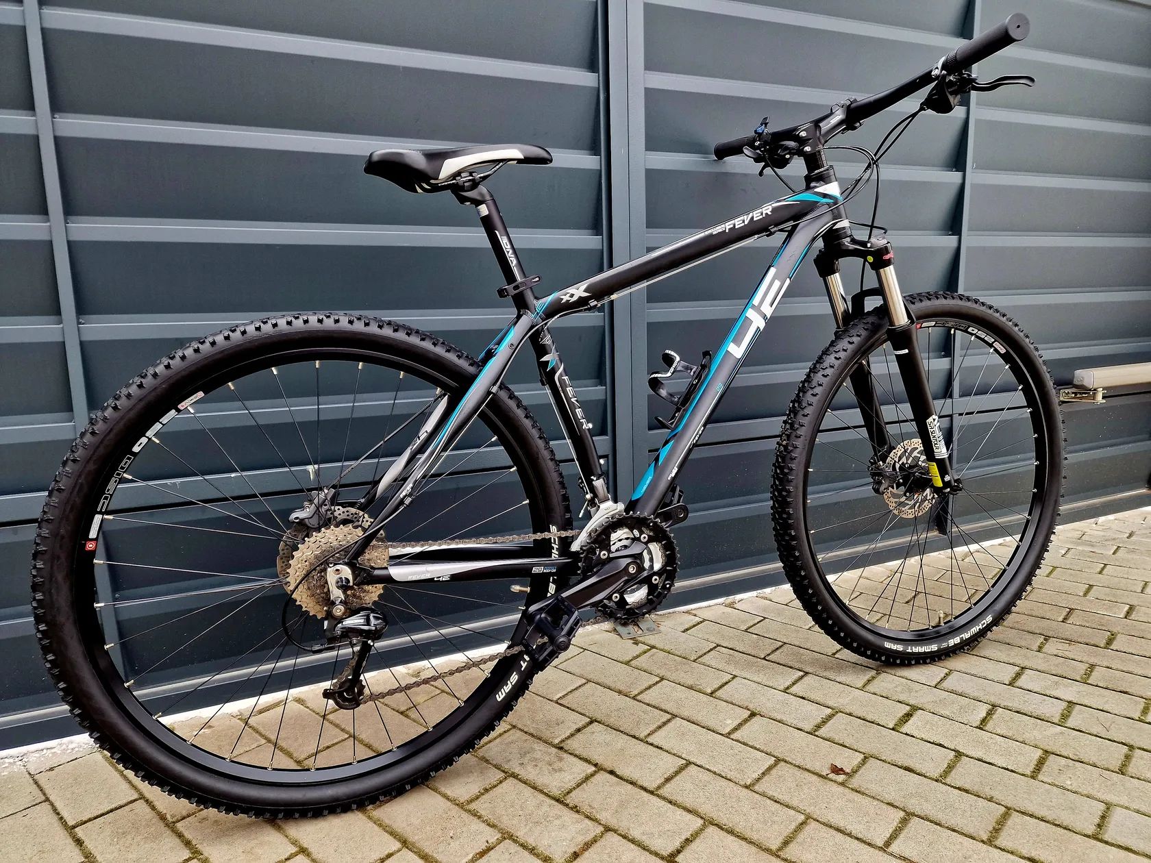 Horské hliníkové kolo 4Ever 29" Kolo je v pěkném stavu bez vůlí a závad. Komplet seřízené a připravené pro nového majitele. Hliníkový rám velikost 18,5" Ráfky velikost 29" Přehazovačka Deore Páky řazení Shimano Alivio Přesmykač Shimano Altus 27 převodů (3x9) Hydraulické kotoučové brzdy Shimano Alivio Odpružená vidlice s nastavením tuhosti a zámkem z řídítek SR XCM Kliky Shimano Středy kol Shimano Držák na láhev Vhodné pro postavu cca 150-175cm Při prodeji vystavím doklad o koupi. Lze poslat poštou při platbě převodem na účet. Prohlídka možná kdykoliv po dohodě. Záruka na původ zboží. Jirny (Praha-Východ)