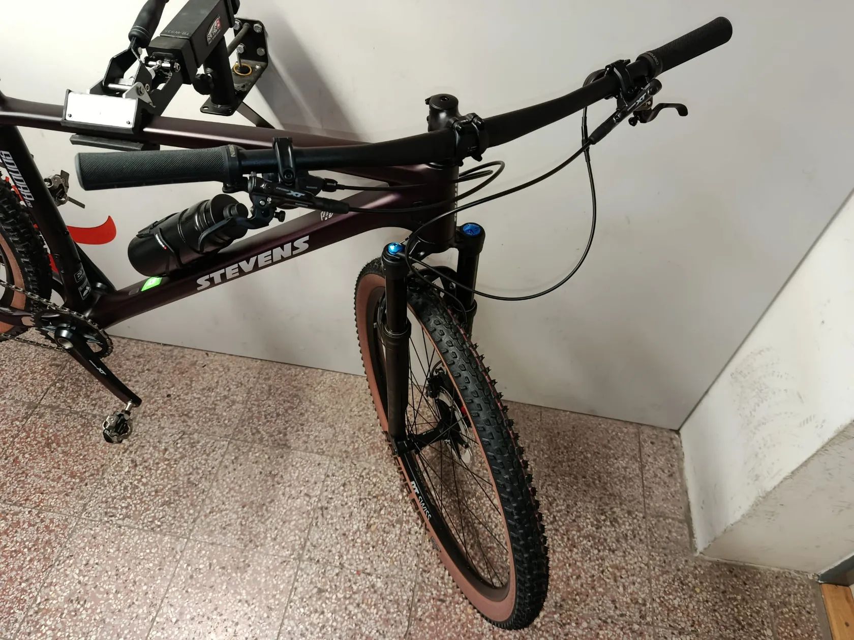Nabízím nové horské kolo Stevens Sonora ES Dark Red Black ve velikosti 20'' (175-190cm). Odlehčený karbonový rám, odlehčená vidlice Fox a kompletní sada Shimano XT brzdy i řazení, včetně chlazených destiček s kotoučů. Zapletená kola DT Swiss X 1900. Pláště Schwalbe Racing Ray a Racing Ralph 29x2,25. Váha kola bez pedálů 10,2kg. Nášlapy Shimano XT součástí kola. Je možné zaměnit za klasické pedály. Košík a láhev Elite také součástí. Ochranná samolepka pod řetězem a pod spodní rámovou trubkou. Model 2026. Kolo bylo pouze 2km na silnici vyzkoušeno zákazníkem, ale nakonec si ho nevzal.