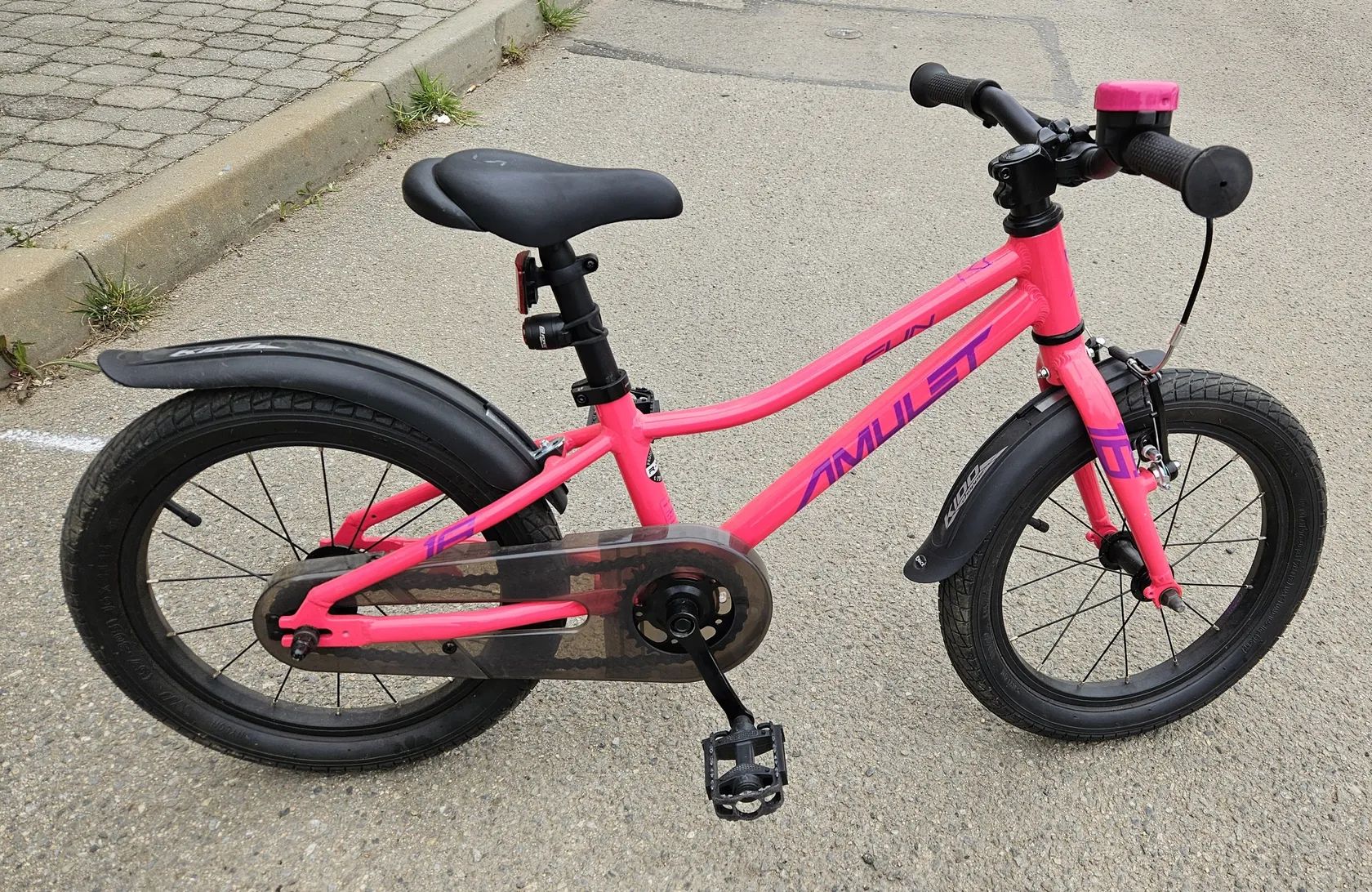 AMULET FUN 16" je základním modelem s 16" koly v kolekci AMULET 2023. Kolo disponuje zcela novým rámem s inovovanou geometrií SG5. Nové profily trubek pro ještě nižší hmotnost spolu s pohodlnější a ergonomičtější geometrií dělají z 16" FUN skvělé kolo pro první metry každého dítěte. Osazení lehkými převody pro snadný rozjezd a dvě nezávislé brzdy pro bezpečné zastavení. Sedlo s praktickým držadlem pro pomocnou ruku při prvních pokusech. Kolo je po jednom dítěti, koupeno v roce 2024, ježděné ani ne 1 sezonu, od té doby je v garáži. Kolo skoro jako nové, pomocná kolečka v ceně. Pouze osobní odběr: Mikulov - Pasohlávky - Pohořelice