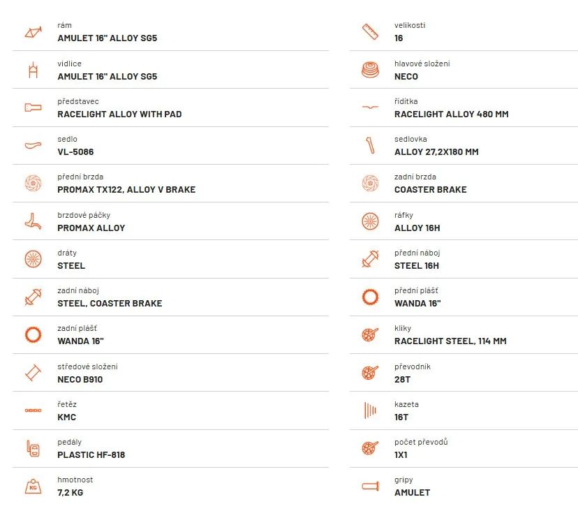Kategorie dětské kolo 16" – obvykle pro výšku cca 100–115 cm, věk přibližně 4–5 let