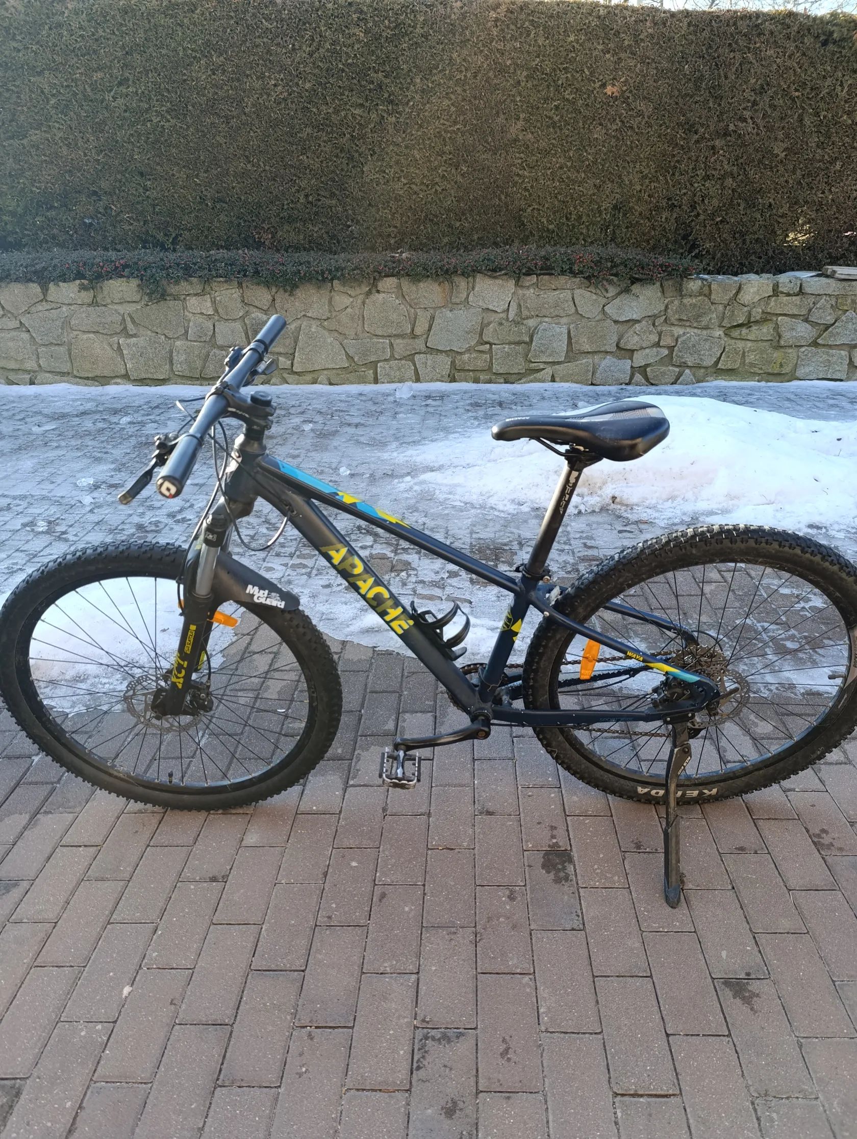 Dětské horské kolo, váží 13.8 kg, má kotoučové brzdy, hliníkový rám a 8 převodů. Není už úplně v nejlepším stavu ale jezdit se na něm dá. Zadní kolo jezdí malinko do 8 a někdy zlobí přehazovačka na 1. Převodů, ale fakt málo kdy. Řetěz je trochu zrezlý.