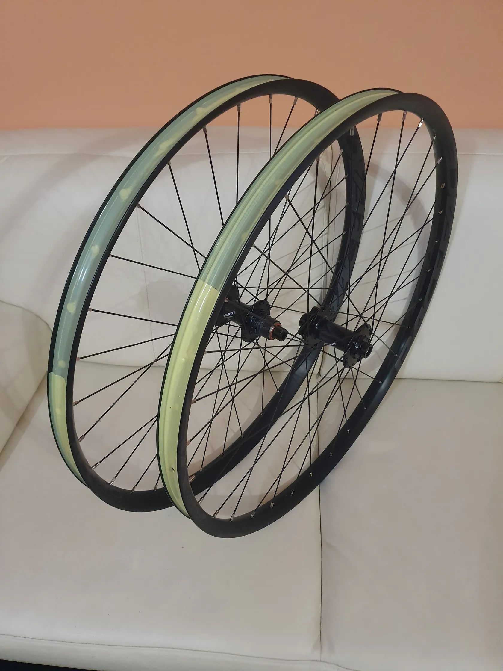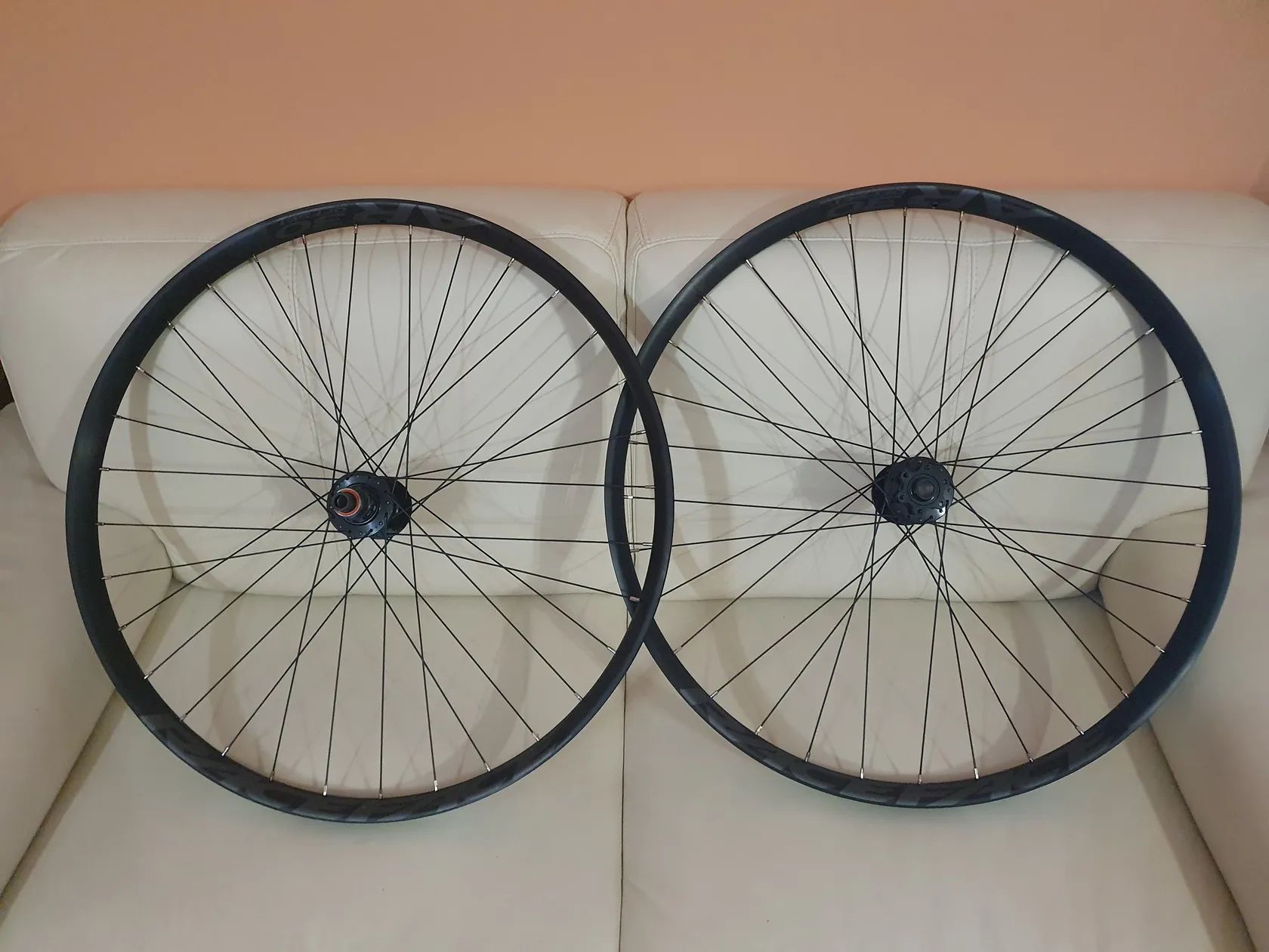 Prodám nová zapletená 29" kola s asymetrickými ráfky Race Face AR 30, vnitřní šířka 30 mm, na nábojích Sram MTH 716, 15x110 mm, 32 děr, 6 šroubů (přední) a MTH 746, 12x148, 32 děr, 6 šroubů, XD ořech (zadní). Ke kolům přiložím i nový ořech pro Shimano HG. Váha celého setu vč. nalepené bezdušové pásky: 2.120 g (970 g přední, 1.150 g zadní). Kola mi zbyla z nerealizované stavby.