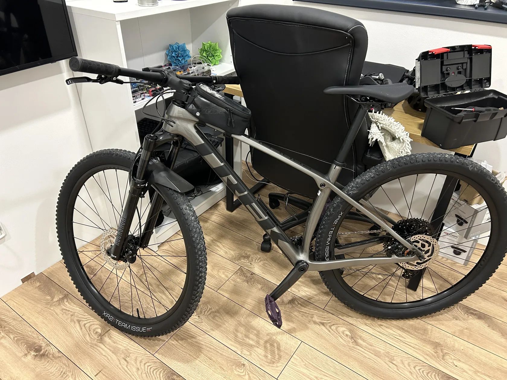 Prodám karbonový Trek Procaliber 9.5. najeto podle kondice z apple wacth na kole cca 1600km, kupované 08/2024(stále v záruce). Oproti standartní specifikaci kolo prošlo lehkým upgradem. Vidlice Rockshox Reba 120mm-lehčí než původní Judy Silver s vyšším zdvihem(PC:10.000kč). Dále před dvěmi týdny vyměněn řetěz za SLX, přední kotouč SLX 180mm(namísto 160mm původnímu), desky Galfer,přehazovačka Shimano XT-standartně je tam deorka, oz.kolo na klikách zaměněno za 32z(origo 30z dám ke kolu). Celkově pěkné, lehké xc kolo, které se neztratí ani závodech. Na nabídky typu 25-30tis nereaguji, lehká dohoda o ceně možná. Celkově vyšlo na cca 49.000kč. Ke kolu mohu přidat úplně nové pneu continental crossking 29x2,3”. Odpružená sedlovka sountour není součástí kola, na prodej s originální sedlovkou a sedlem.
