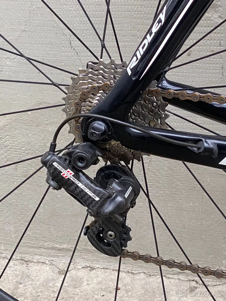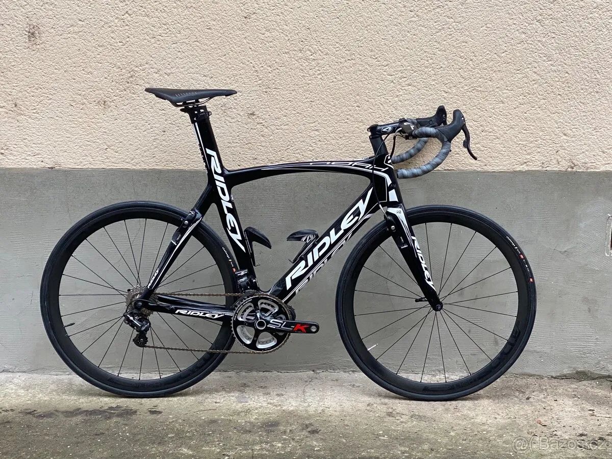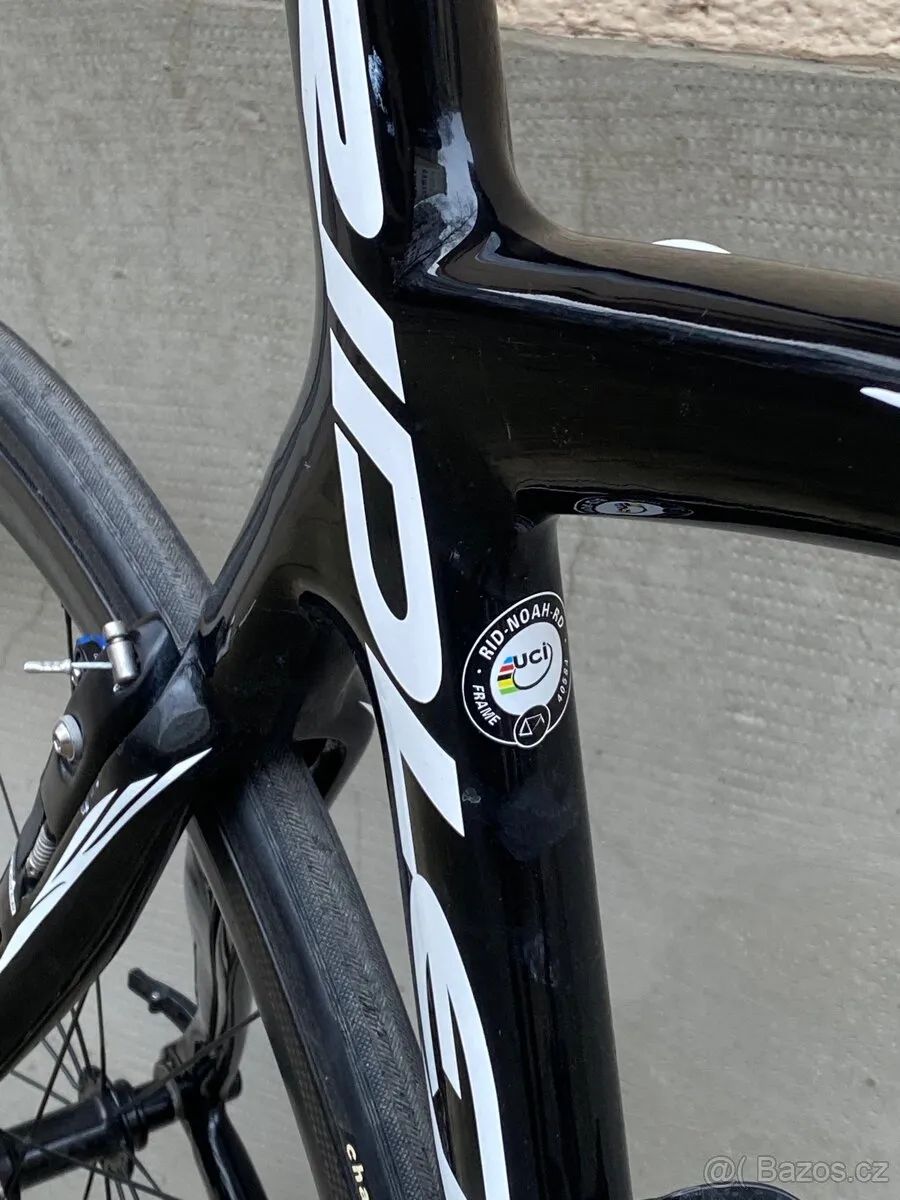 Ridley Noah Fast představuje vrchol silniční produkce belgické značky Ridley, zaměřený na maximální aerodynamiku, tuhost a exkluzivitu. Rám je vyroben z unidirectional karbonu SHM (Super High Modulus), kombinujícího vlákna 50T, 40T a 30T pro dosažení vysoké tuhosti při velmi nízké hmotnosti. Konstrukce zahrnuje kónickou hlavovou trubku, integrovanou sedlovku s kapkovitým profilem, středové složení PF30 a kompletní vnitřní vedení kabeláže Verze Fast se odlišuje plně integrovanými brzdovými čelistmi minimalistického V-brake typu, které jsou plynule zapracovány do tvaru vidlice a zadní stavby. Aerodynamiku dále zlepšují štěrbiny R-Flow na vidlici a sedlových vzpěrách a odtrhové hrany na trubkách rámu, vytvořené zdrsněným lakem, optimalizující obtékání vzduchu. Vývoj probíhal v aerodynamickém tunelu. Osazení kola je ryze prémiové: elektronická sada Campagnolo Record EPS, karbonové kliky s l krátkou PF30 osou určenou na míru přesně tomuto středu. Zánovní Ložiska Rotor. převodníky 50/34 a kazeta 11–28. Zapletená kola Lightbicycle, spojující velmi nízkou hmotnost (1150g) a tuhlst, s karbonovými ráfky jsou obuta do galusek Chellenge Elite 28mm. Kokpit tvoří originální předatavec s integrovaným držákem Garmin, a řídítka 3T Aeronova, která jsou rovněž absolutní špičkou v aero sféře. Brzdný výkon zajišťuje dokonalá kombinace nyní nových špalků LightBicycle a lightbicycle ráfků. Celková hmotnost kola činí 7.2kg bez pedálů, což je mimořádná hodnota vzhledem k aerodynamickému zaměření tohoto modelu. Kolo je postaveno oproti “tovární stavbě” s důrazem na detail a například optimalizováno, tak, že je kabel eps a bowden brzdového lanka sloučen do smršťovací bužírky například tím, že jsou Non-drive side špice zadního kola v křížení provázány karbonem, pro vyšší tuhost. Velikost L, vhodné od cca 178cm aktuálně nastaveno na 191cm (což považuji za absolutní horní limit) výška sedla: osa pedálu - vrch sedla je cca 99cm, lze ještě o zhruba 15mm zvýšit. Snížit jej lze samozřejmě libovolně)