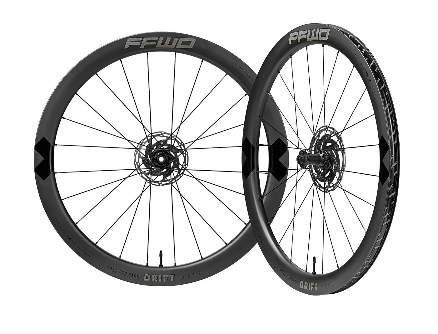 ráfek FFWD DRIFT PACE LAW TECH o výšce 48 mm, vnější šířce 35 mm a vnitřní 28 mm hookles patky ráfku výplet Sapim CX-Ray/CX-Sprint Straightpull v poměru 2:1 externí niple DT ProLock mosazné náboje FFWD N/GAGE 2:1 Straightpull, rozhraní CenterLock doporučená šířka obutí 38 až 60 mm hmotnost páru 1530 gramů maximální váha jezdce 120 kg maximální tlak v pneu 3,5 bar součástí balení jsou kola, bezdušové ventilky a páska (šíře 32 mm), dvojitý obal