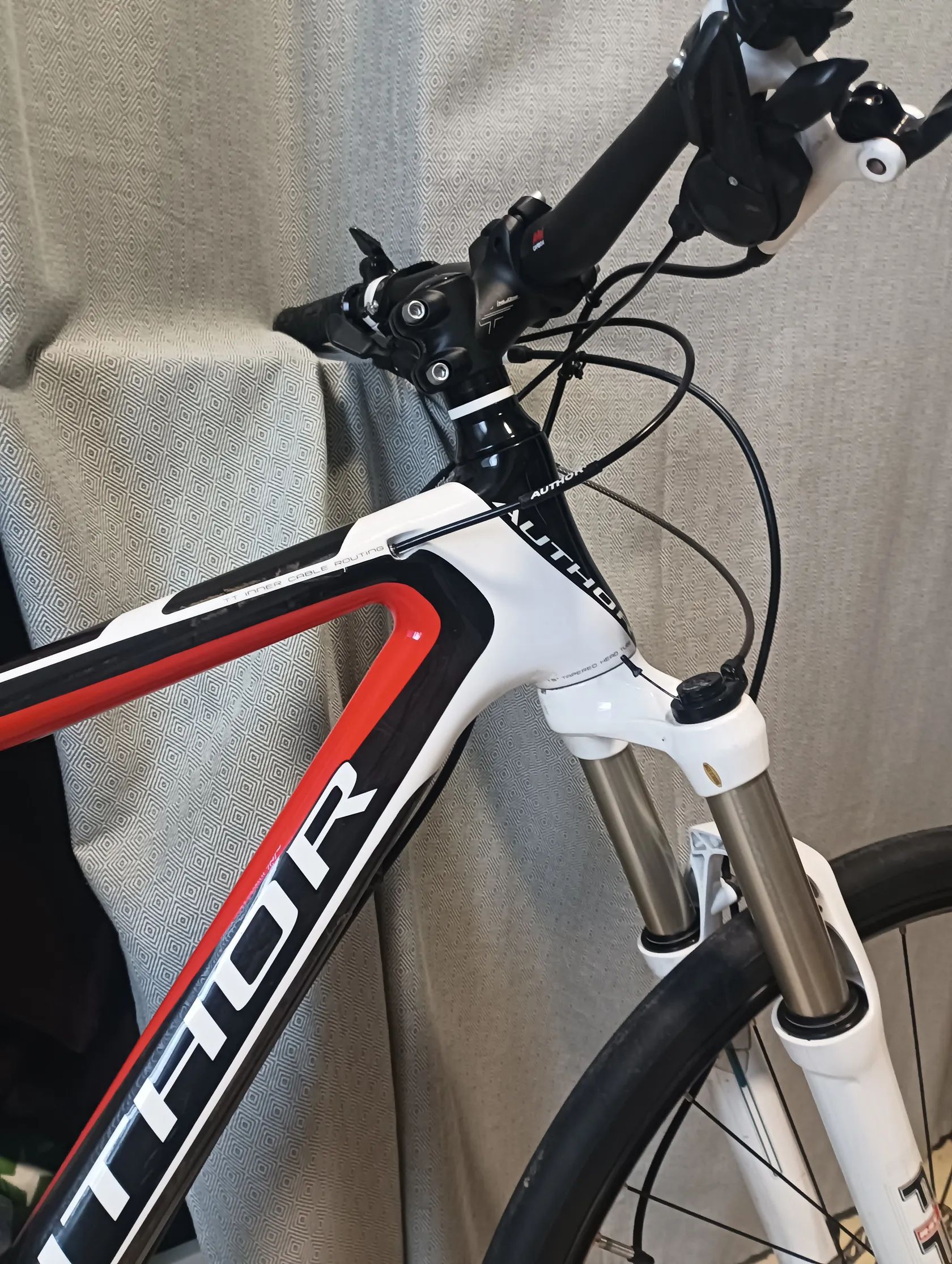 Prodám po otci horské kolo Author Modus s karbonovým rámem. Akorát si musíte vyměnit pláště. Jsou tam slabé. Otec s koly občas experimentoval. Málo používané. Po každé jízdě údržba. Servisované. Vel.rámu L. Vel.kol 29.. Sedlo je mírně odřené na kraji.