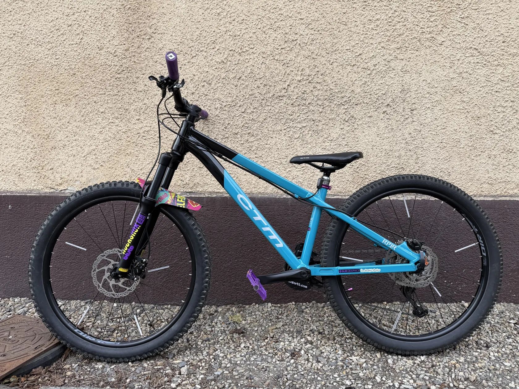 Tento kus je původně dirt, částečně přestavěný na trail (teleskopická sedlovka, trailové pláště, širší rozsah kazety)