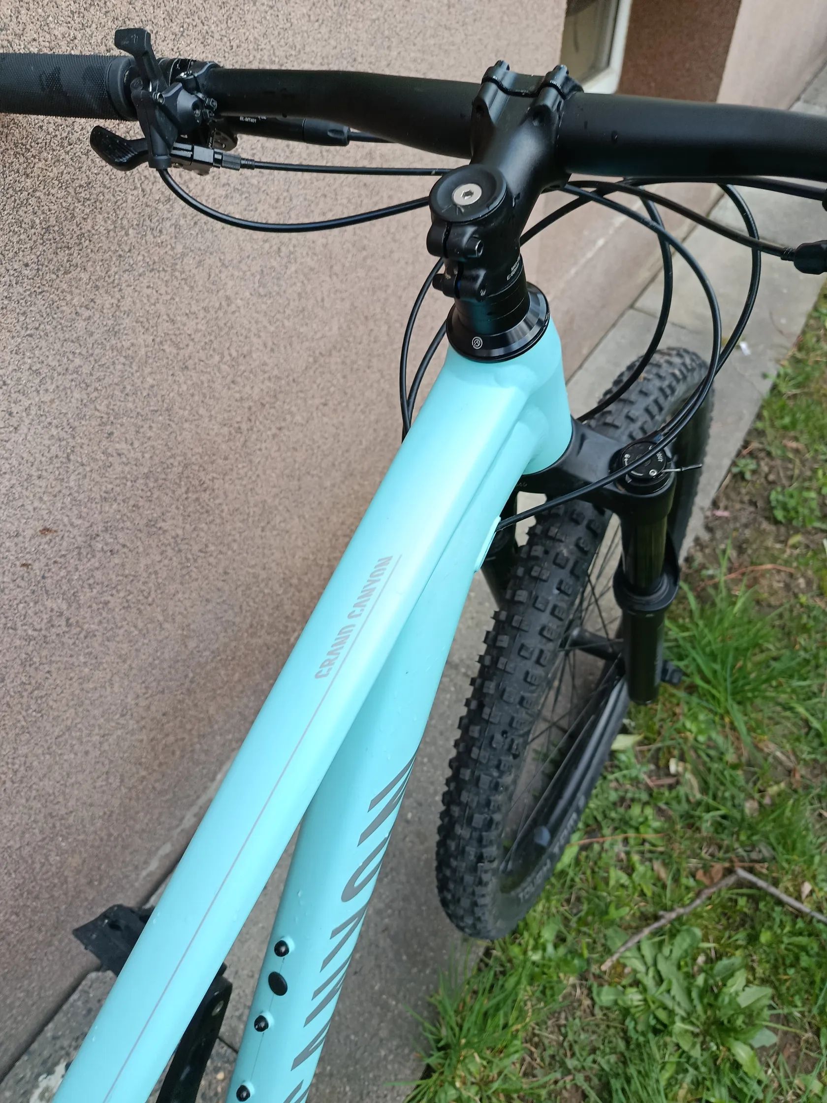 Hardtailový trail bike Grand Canyon 7 wmn krásné tyrkysové barvy. Model speciálně vyvinutý pro ženy. Pohodlná jízda v lese, popř pro začátky na trailech. Jedna majitelka, koupeno v roce 2021. Faktura k dispozici. Ježděno rekreačně. Z toho přes dva roky stálo ve sklepě, z důvodu těhotenství a péče o mládě. Velmi dobrý stav.