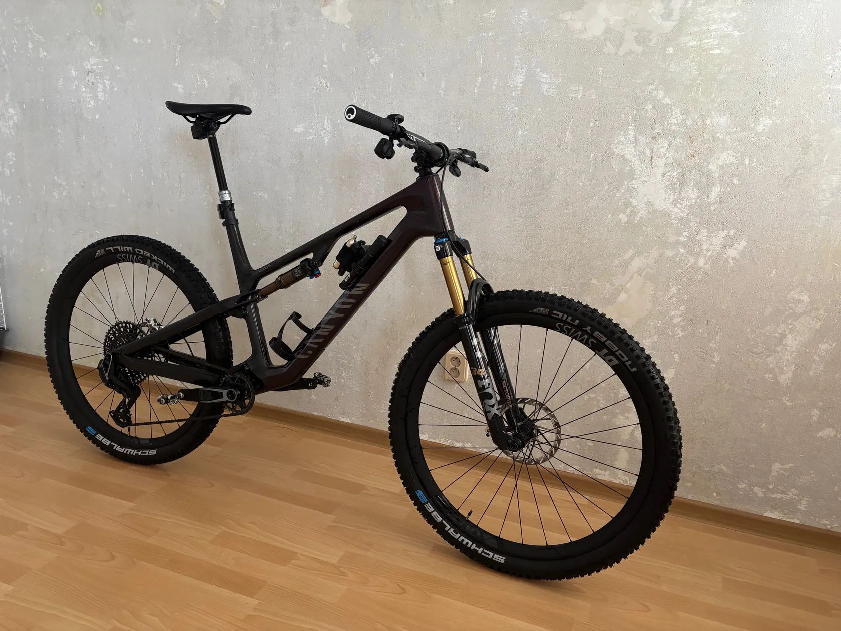 Superlehký karbonový celoodpružený MTB rám s vyváženou geometrií, která kombinuje trailové schopnosti s celodenním pohodlím. Tlumič: FOX Float DPS Factory 130 mm Odpružená vidlice: FOX 34 Factory 29 Grip2 34 mm nohy, zdvih 140 mm. Přehazovačka: SRAM X0 Eagle AXS Transmission Řadící páka: SRAM AXS POD Ultimate Kazeta: SRAM X0 Eagle XS 1295 10-52 Kliky: SRAM X0 crank Řetěz: SRAM XO T-Type Brzdy - Kotoučová brzda: SRAM Code Ultimate Stealth 180 mm Kola Přední kolo: DT Swiss XMC1200, 6 šroubů Vnitřní šířka: 30 mm Materiál ráfku: Karbon Weight: 729 g Zadní kolo DT Swiss XMC 1200 XD, 6 šroubů Vnitřní šířka: 30 mm Weight: 820 g Plášť: Schwalbe Nobby Nic 2,4 / Schwalbe Wicked Will 2,4 Představec: Race Face Turbine R Řídítka: Race Face Next 35, Rise: 20 mm Gripy: Ergon GA20 Sedlo: Ergon SM10 Sport Men Sedlovka RockShox Reverb AXS