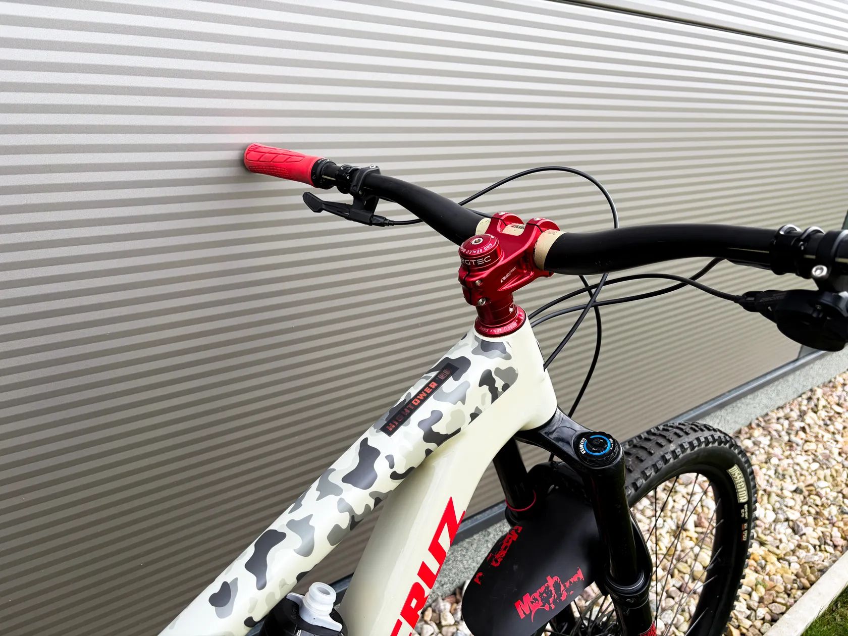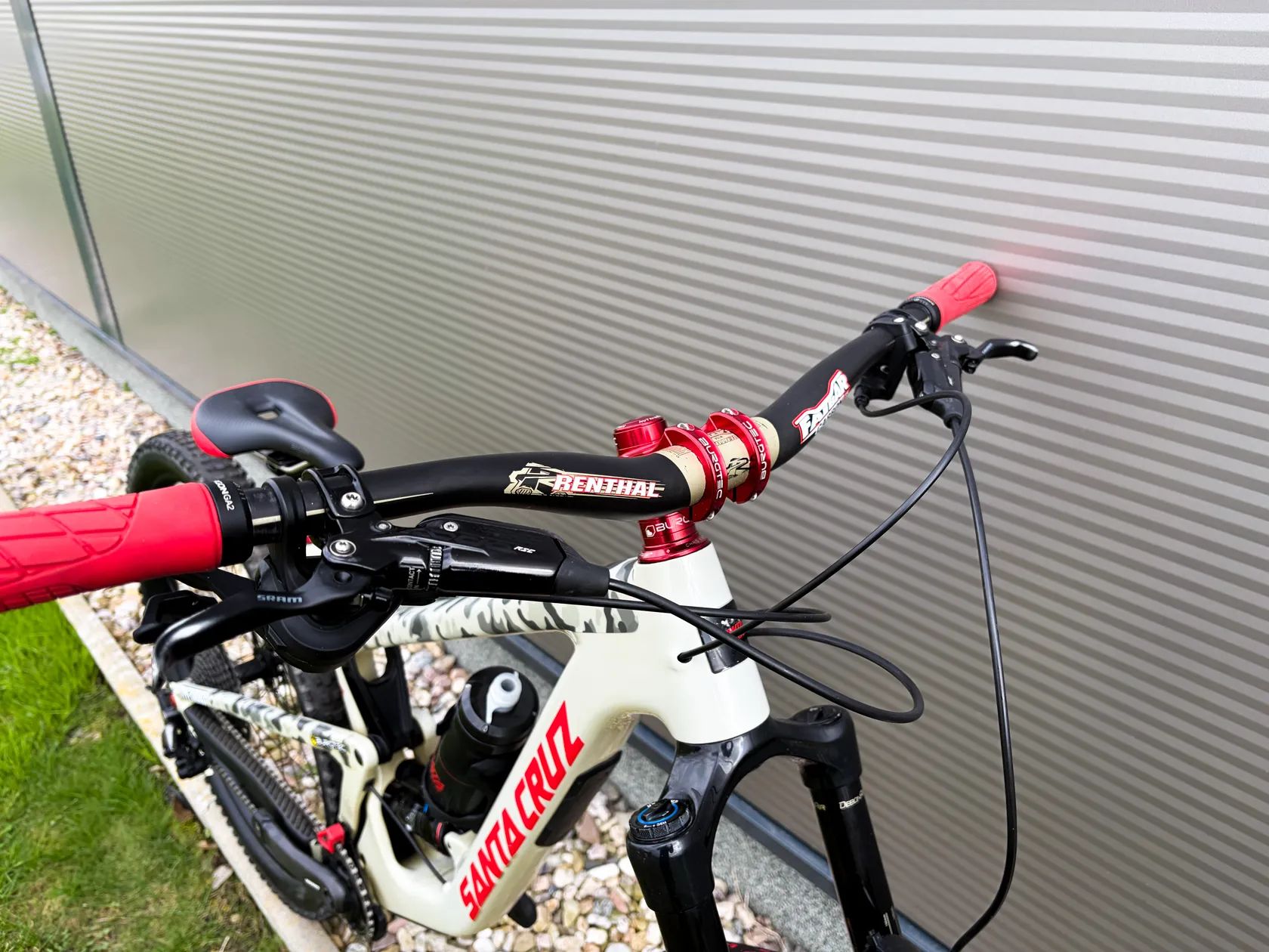Kokpit: Burgtec RED + karbonová řídítka Renthal Fatbar 35 – kvalitní komponenty pro agresivní jízdu