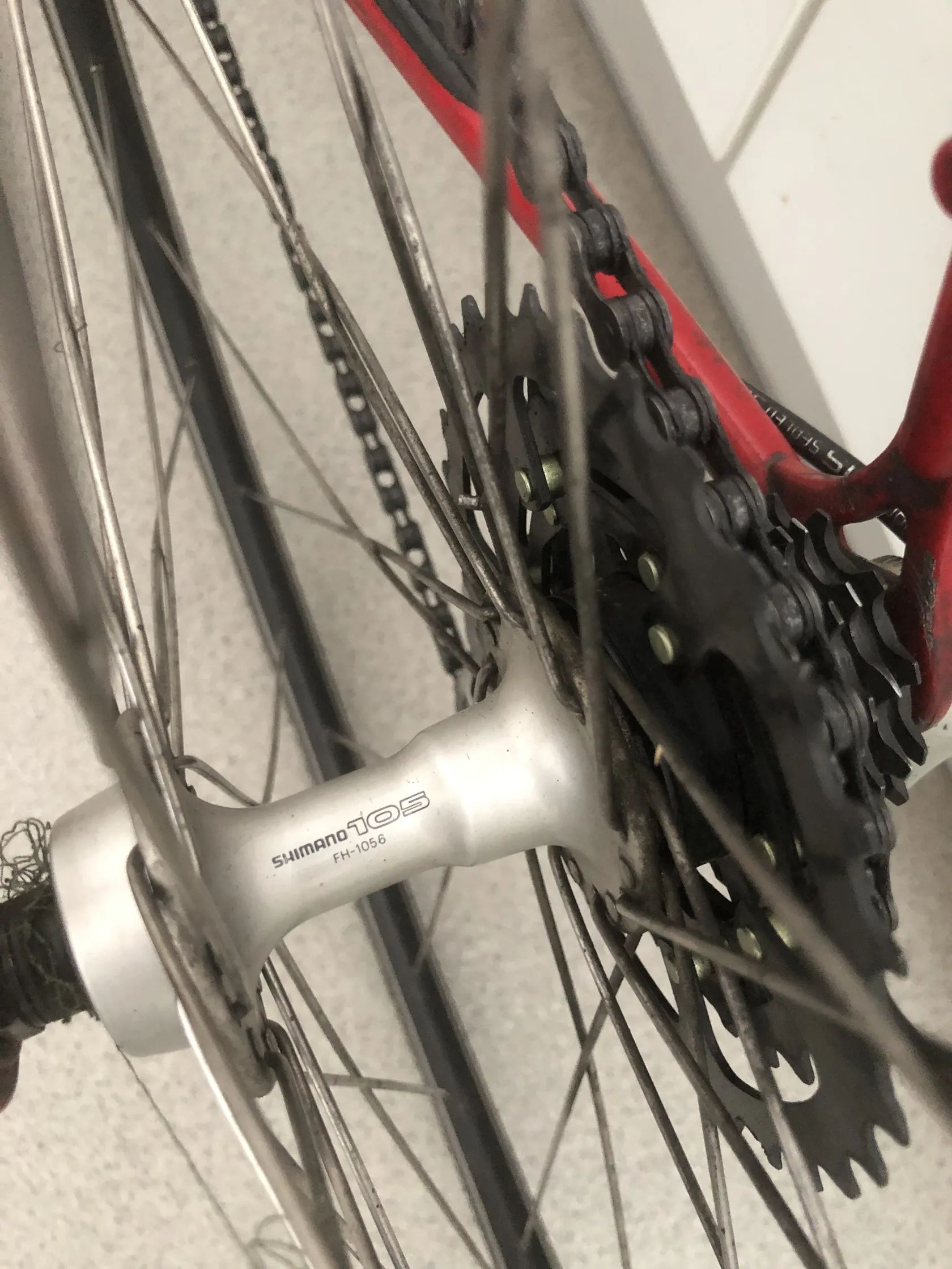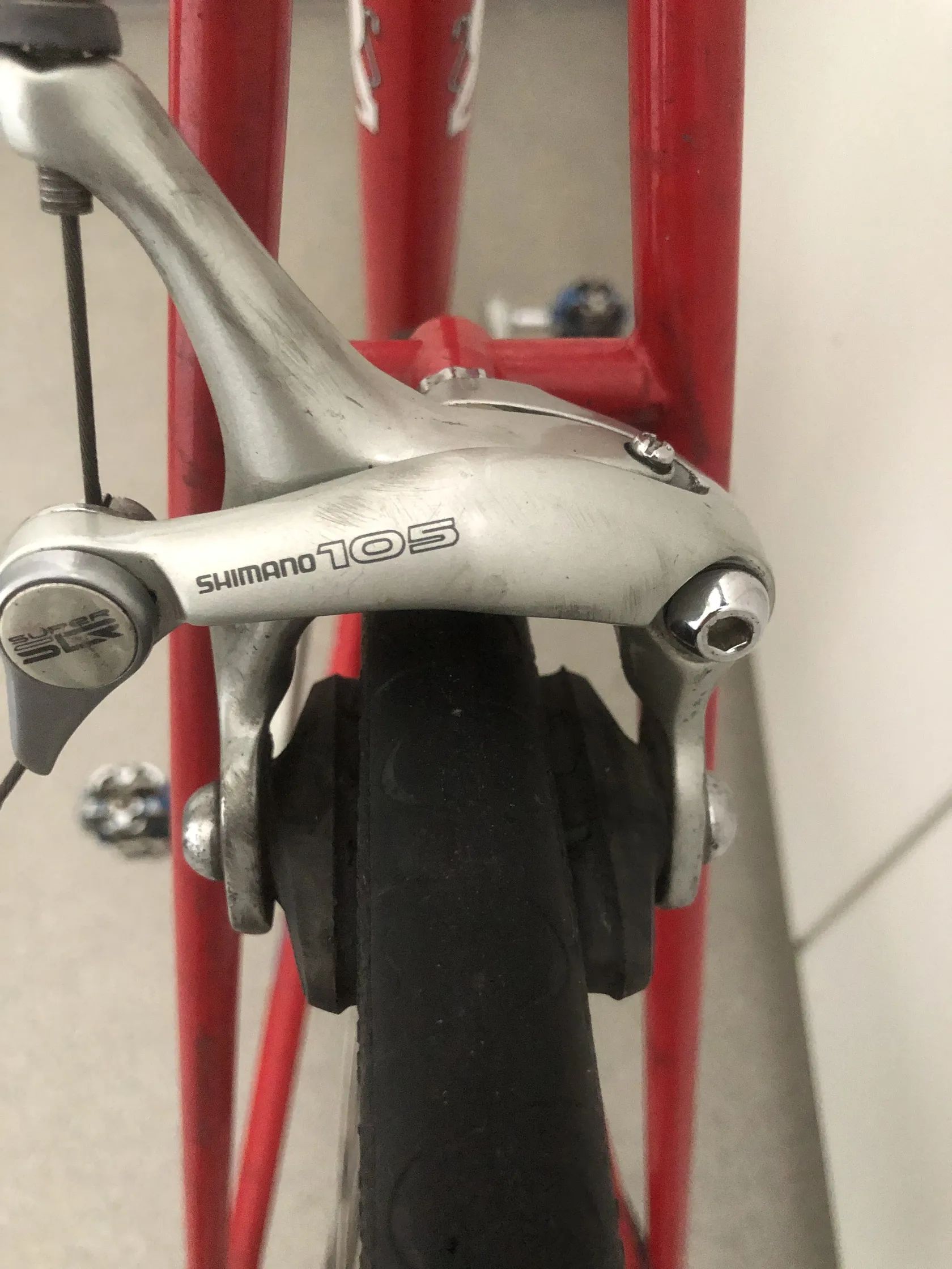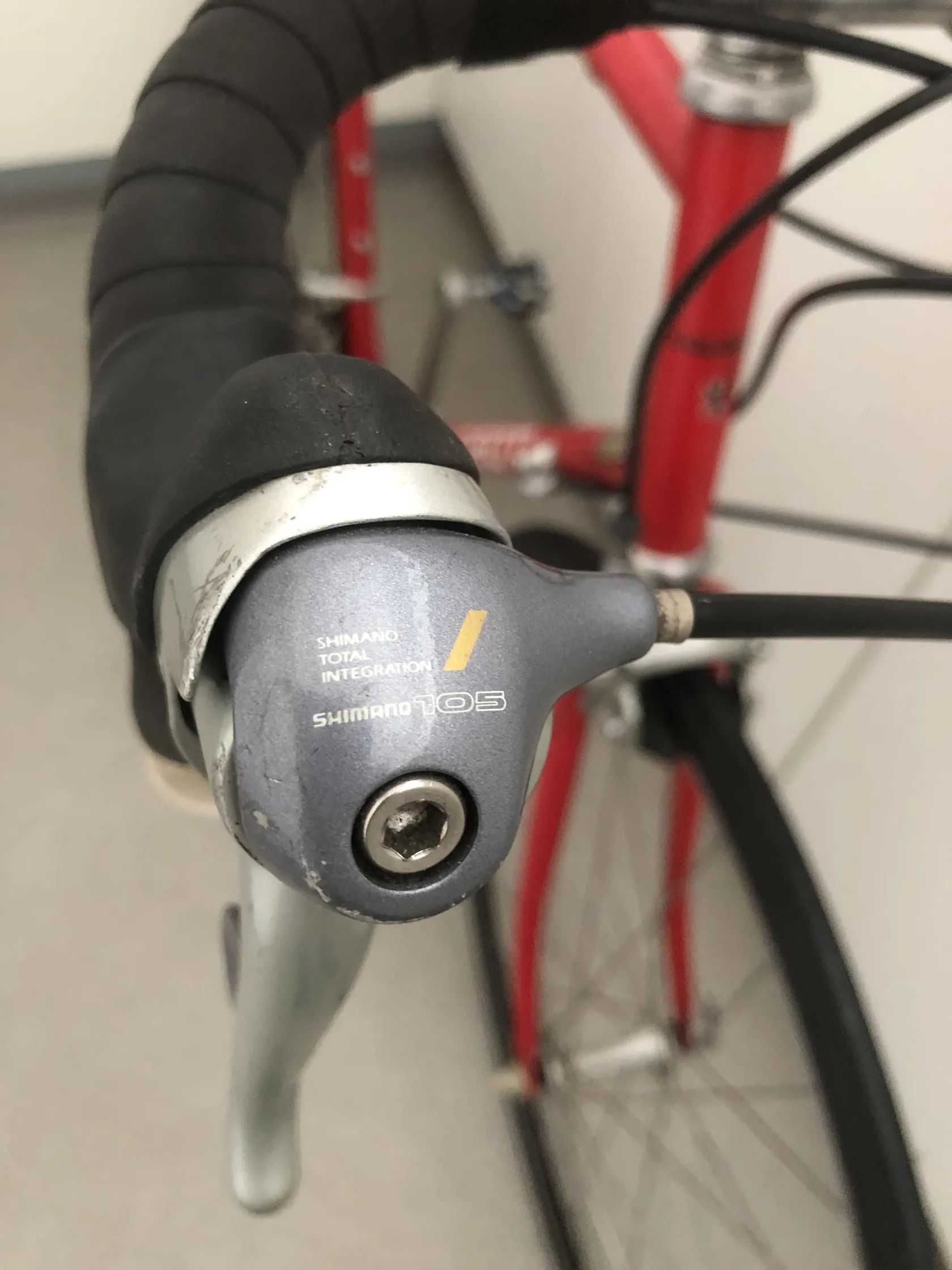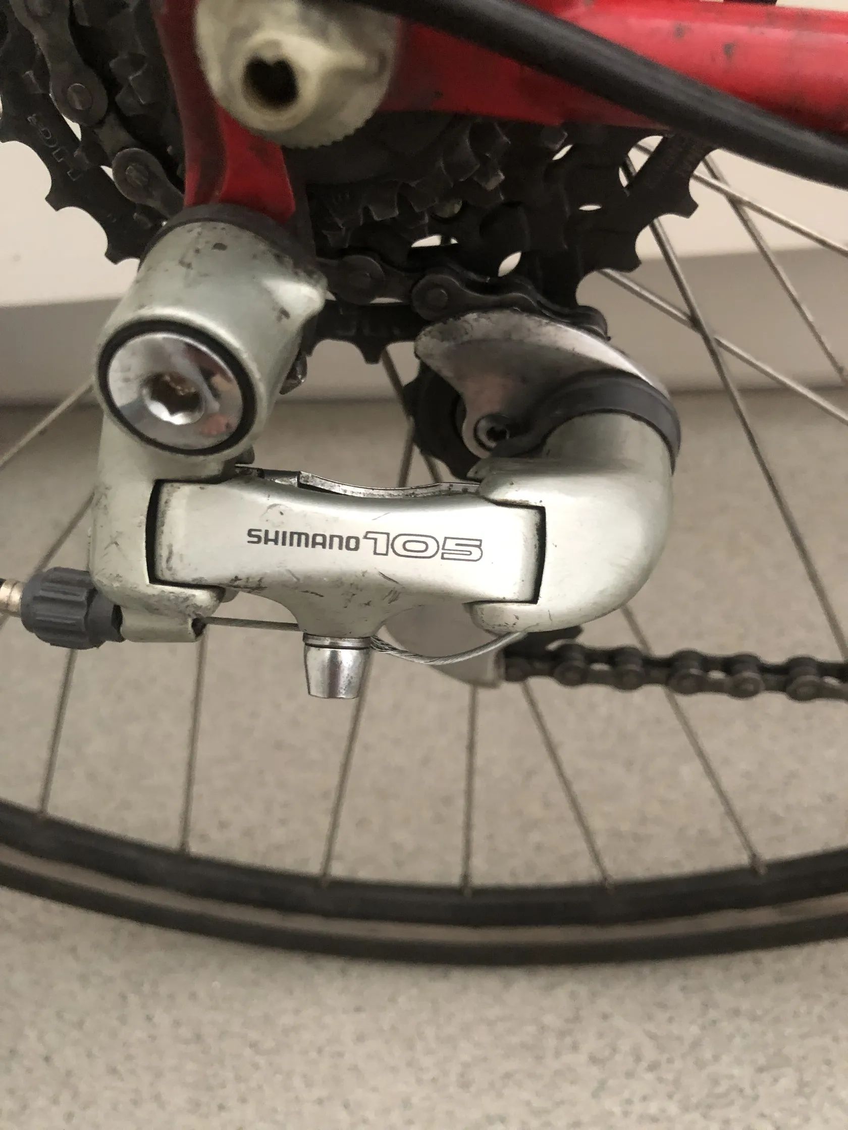 Komponenty Shimano 105 (řazení, brzdy, kliky, středové osy) – spolehlivá střední až vyšší třída, kvalitnější než základní hobby osazení