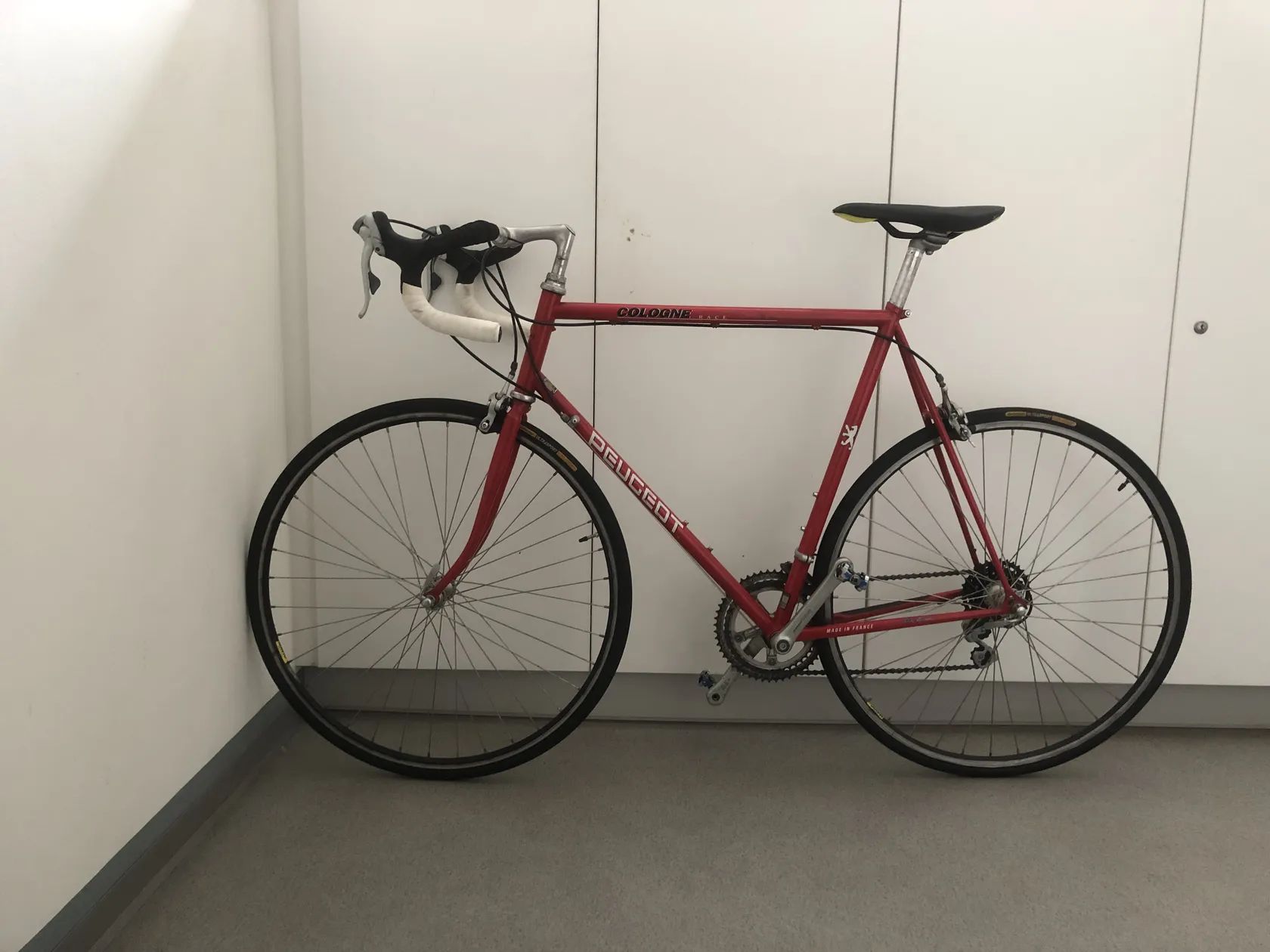 Prodám silničku Peugeot Cologne race.Počet převodů 2x7.Řazení,brzdy,kliky,stř.osy-Shimano 105.Ráfky Mavic 28”,pláště Continental ultrasport,váha 9,4kg bez pedálů.Přidám původní sedlo Avocet race II. Kolo je v dobrém stavu,vše funkční ale pár známek opotřebení by se našlo.Preferuji osobní odběr v Liberci
