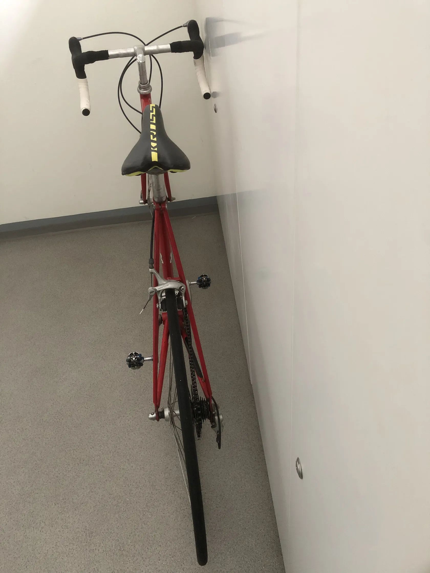 Hmotnost cca 9,4 kg bez pedálů – na starší silničku relativně lehké