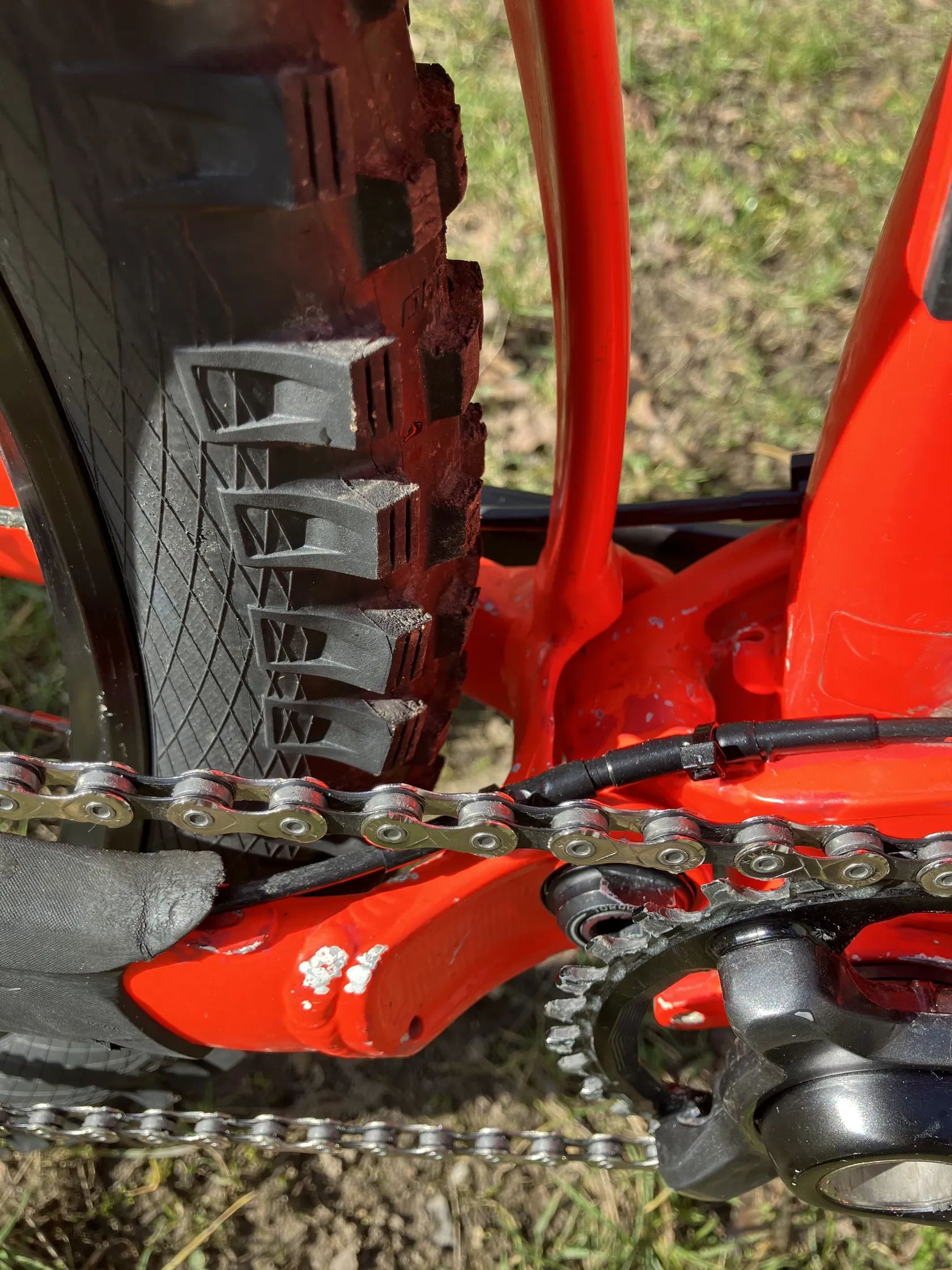 Zadní: 27,5" Schwalbe Magic Mary, Addix Soft, Super Gravity, Tubeless Easy, EVO.