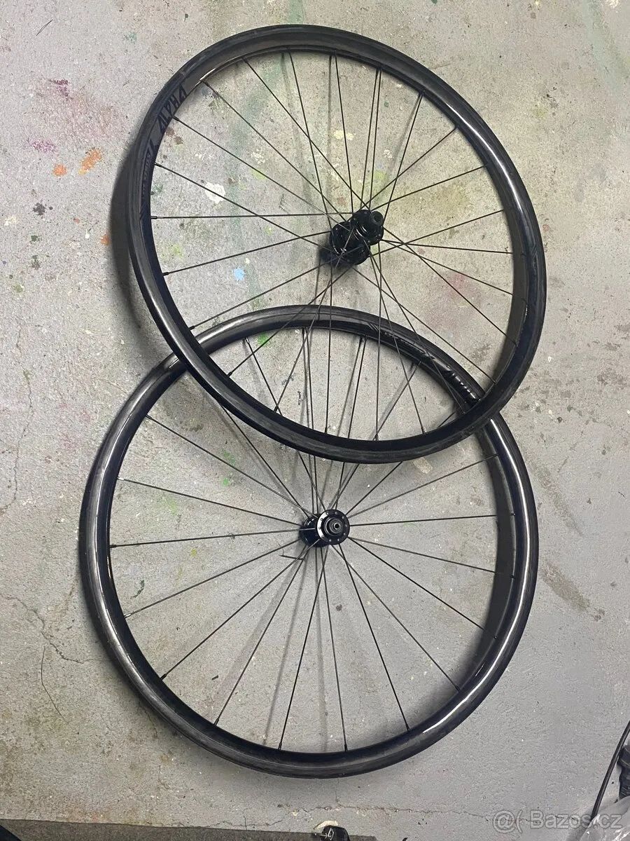 Vhodné na dojetí / přepletení Náboje zcela v pořádku. Přední řáfek má ma jednom místě poškození brzdné plochy, zadní má brzdnou plochu poškozenou na více místech. Možno přeplést na jiné 30/32mm ráfky. (karbon nebo třeba Dr Swiss R511) Špice lze použít na nový výplet.