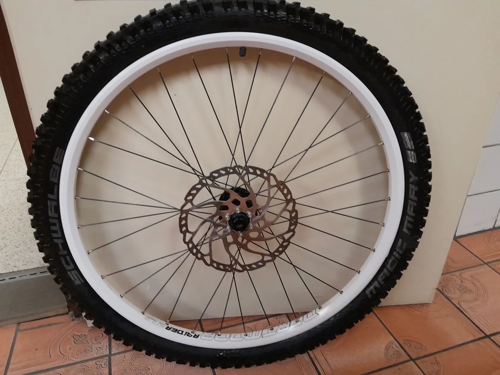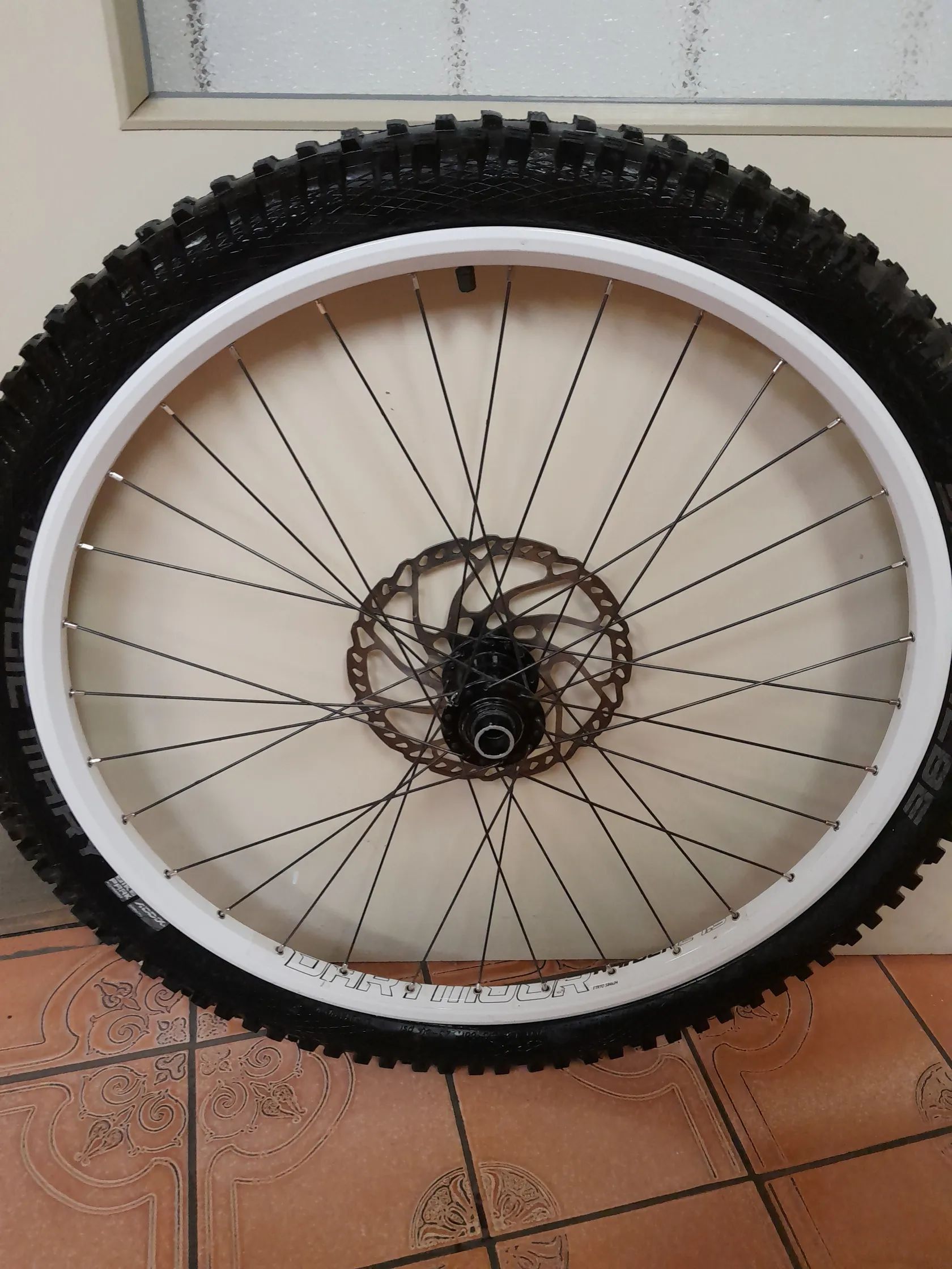Prodám téměř nepoužité přední kolo na lehkém a odolném ráfku Dartmor Raider, měl jsem ho jako náhradní. Pevná osa 20x110mm, plášt Magic Marry-stav 99% a kotouč 203mm