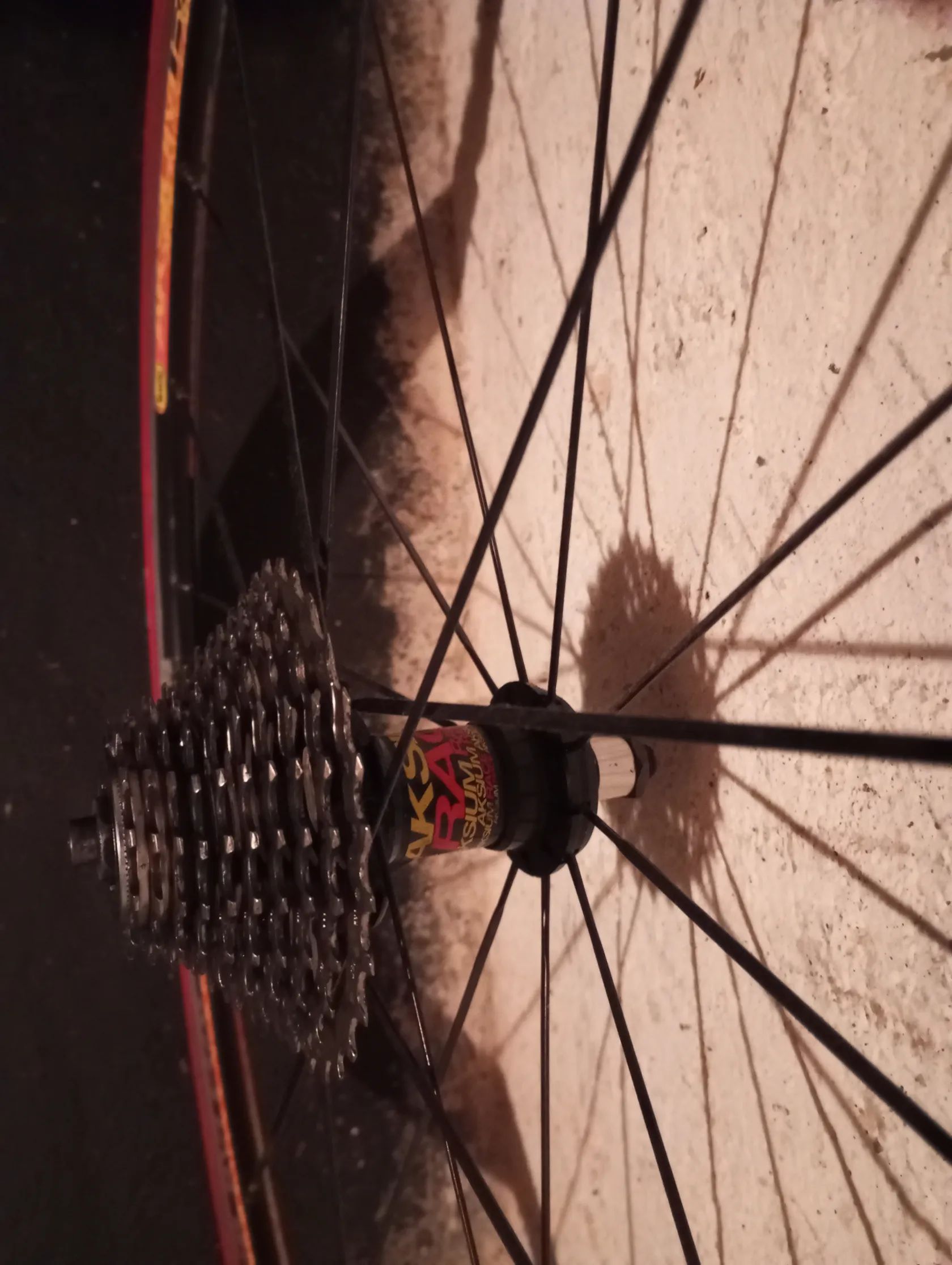 Používané zadní kolo Mavic Axium, ploché dráty, včetně trenažérového pláště a nové kazety 10 speed, bez rychloupínáku.