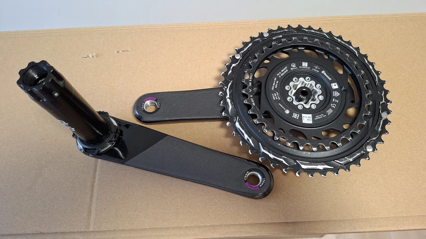 Prodám silniční karbonové kliky Sram Force AXS D2 s integrovaným měřičem výkonu Quarq, 46/33 zubů, délka 170mm.