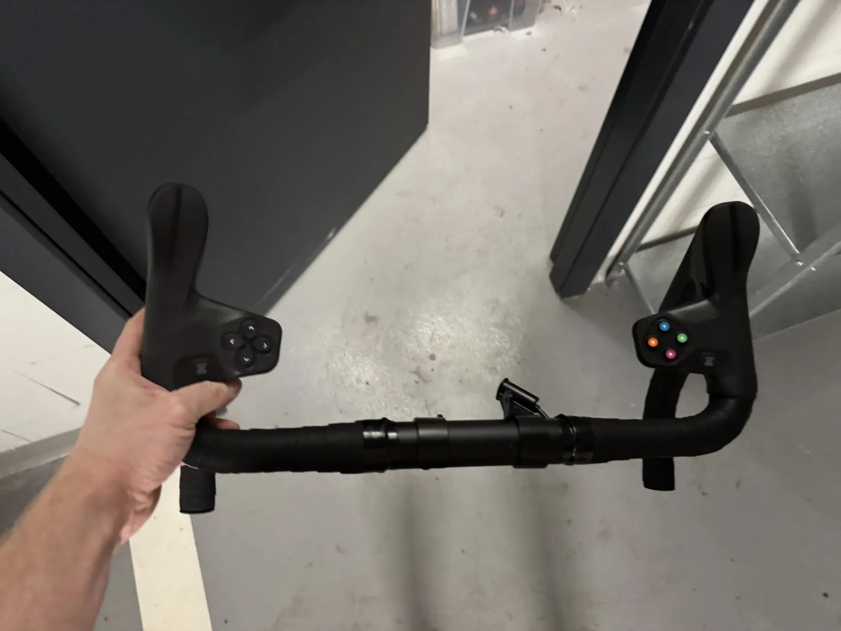 Celá originální Zwift řidítka, nahradil jsem za bullhorny bez ovládacích prvků.