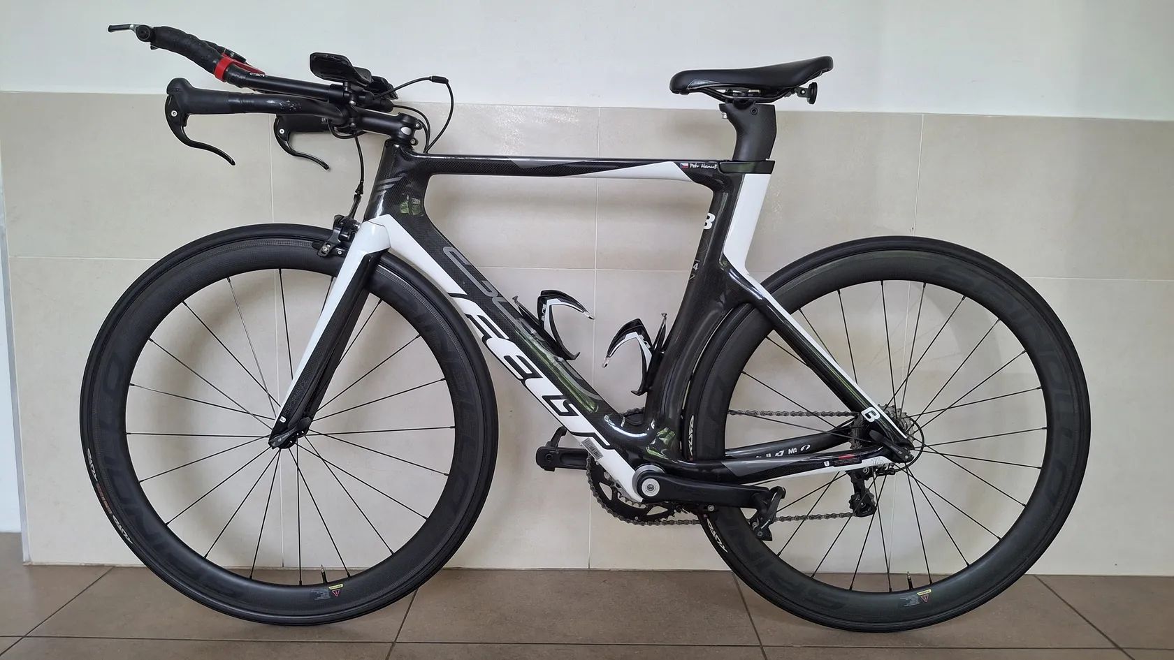 Ideální pro začínajícího triatleta na závody nebo na trénink. Plochý aero rám se skrytou zadní brzdou, představce na řídítkách. 100% stav, pravidelný servis. Drobné oděrky na řídítkách a sedle.