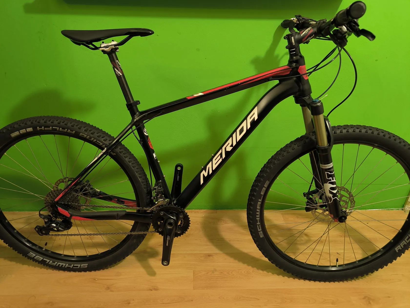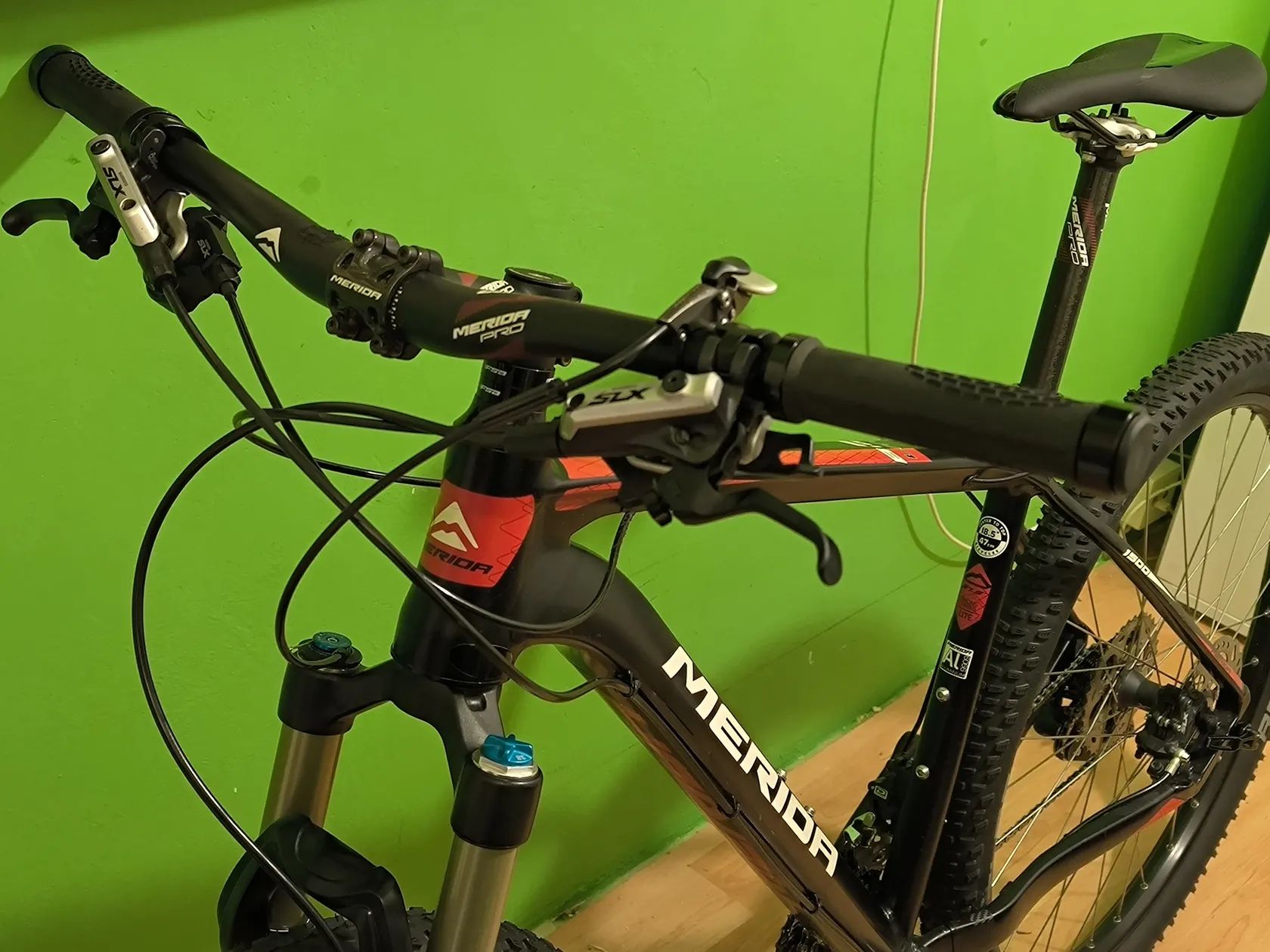 Prodám kolo Merida Big Seven 1500. Pohon 2x10. Kliky Deore, brzdy+řazení SLX, hazka XT. Vidlice Fox Evolution CTD 100 mm, ovládání na řídítkách. Náboje SLX, zadní pevná osa 12x142mm, přední klasický rychloupínák; vnější šířka ráfků 29 mm. Pláště Schwalbe Racing Ralph/Ray. Karbonová sedlovka. Bez pedálů. Rám 47 cm, na fotce na cca 172 cm jezdce. Celková hmotnost 12,45 kg (viz foto). Oděrky od používání, vše tak, jak je na snímcích. Přidám 2x nové duše Hutchinson.