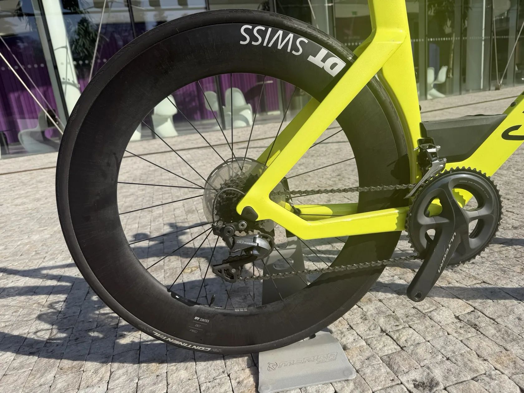 Časovkářské triatlonové kolo, karbonový rám, DTswiss kola vepředu 60mm a vzadu 80mm, mechanická ultegra. Velikost L od cca 180cm do cca.190cm. Na fotce nastaveno na 189cm. Ročník 2023