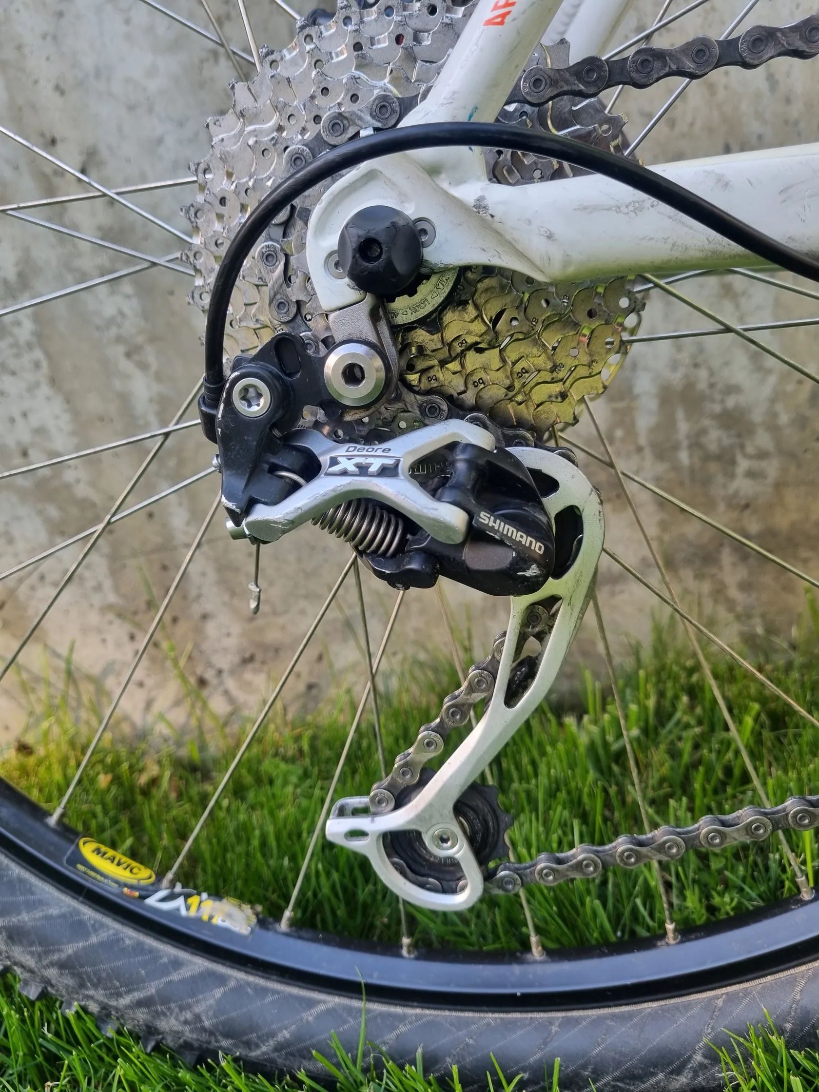 Grand Canyon AL 8 na sadě Shimano Deore XT, velikost rámu 18,5 palce (M, M/L; postava cca 165-180cm). Velmi dobrý stav, odpovídající šesti sezónám občasného jezdění. Tomu odpovídají drobné oděrky. Pravidelně servisované, poslední 3 roky nejeté.