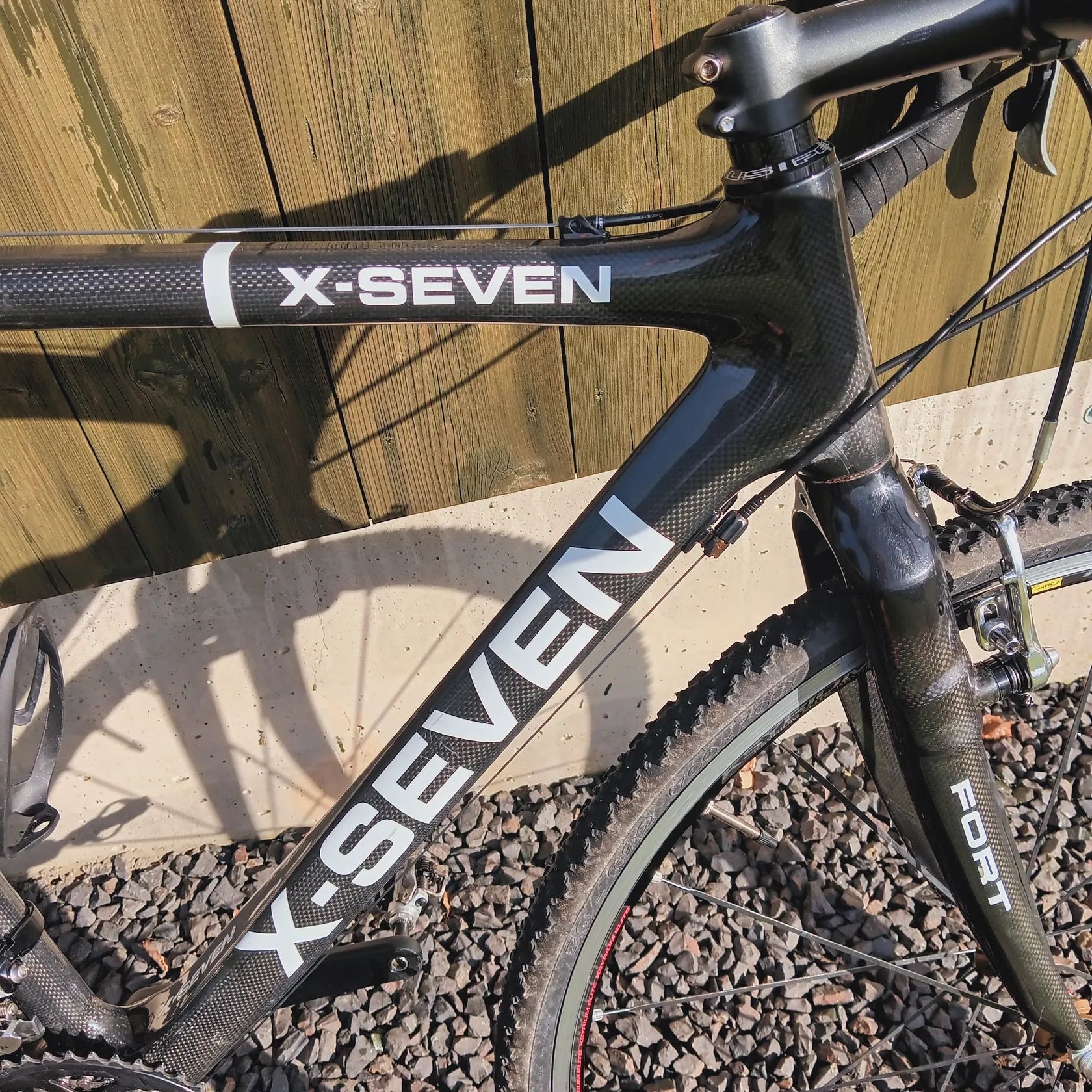 Prodám cyklokrosové kolo dnes už neexistující značky X-SEVEN. Karbonový rám speciálně vyztužený pro závodní zatížení. Rok výroby cca 2011. Jsem druhý majitel. Kolo je v dobrém stavu s běžnými provozními oděrkami. Přední vidlice byla prvním majitelem vyměněna za FORT z důvodu malé tuhosti originální vidlice. Kolo vlastním asi 5 let a bylo používáno pouze na rodinné výlety tak 3x za rok. Prodávám tedy z důvodu nevyužití a myslím, že může ještě dlouho dobře sloužit. Je potřeba vyměnit omotávku (tu daruji ke kolu novou). Sedlo je sice dobové, ale dost tvrdé, doporučuji vyměnit také :-). Kolo v žádném případě neposílám. Pouze osobní předání s možností vyzkoušení. Případně dovezu do 50km od Nového Boru (po platbě předem).