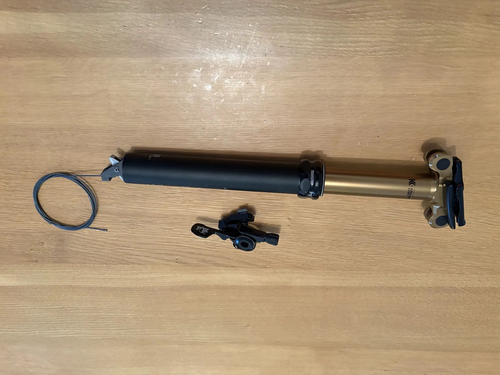 Prodám novou teleskopická sedlovku Fox Transfer dropper, Kashima Coating, remote 100 mm 30.9x345mm včetně nové Fox páčky. Sundáno z nového kola. Váha a rozměry dle fotografií.