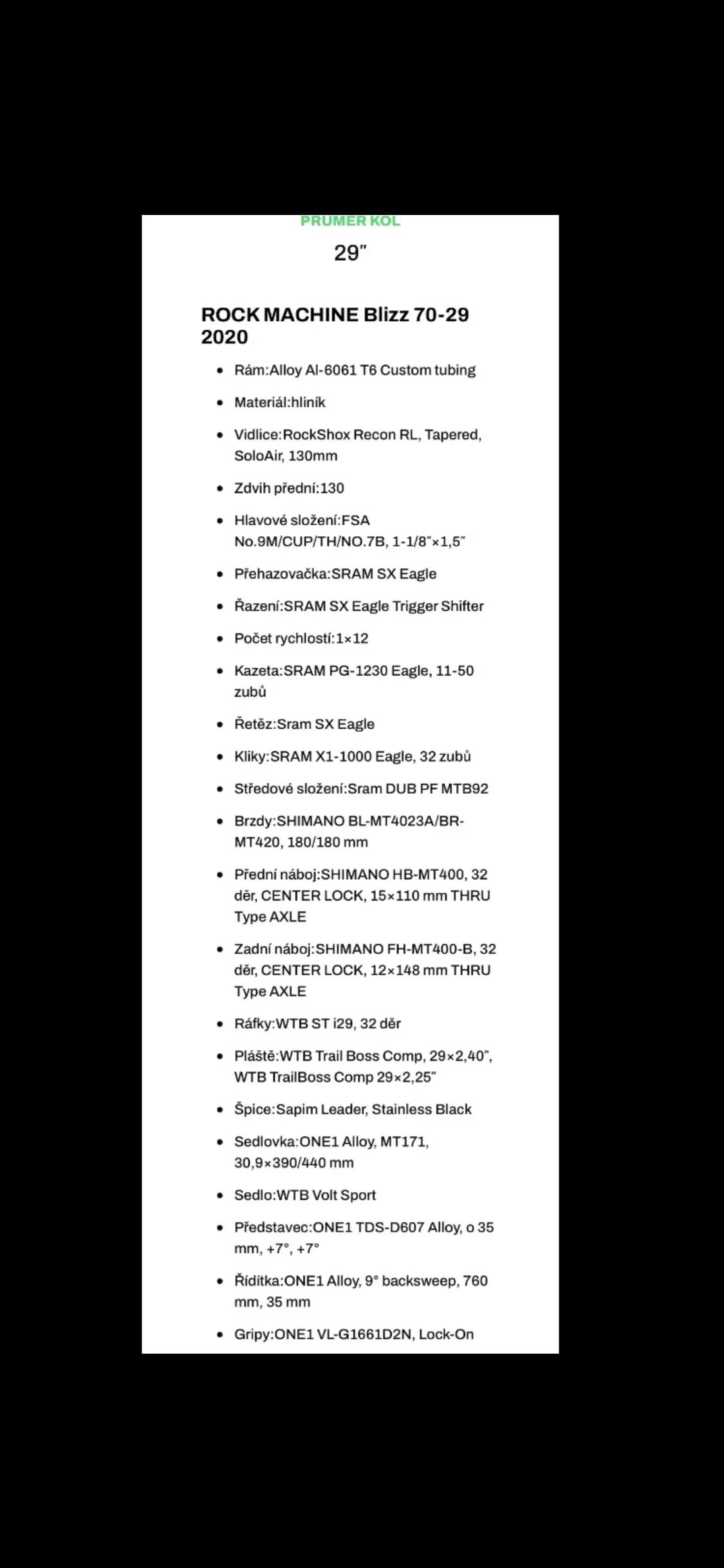 Dobrý den, mám zájem o Vámi nabízený inzerát Rock Machine Blizzard TRL 70-29