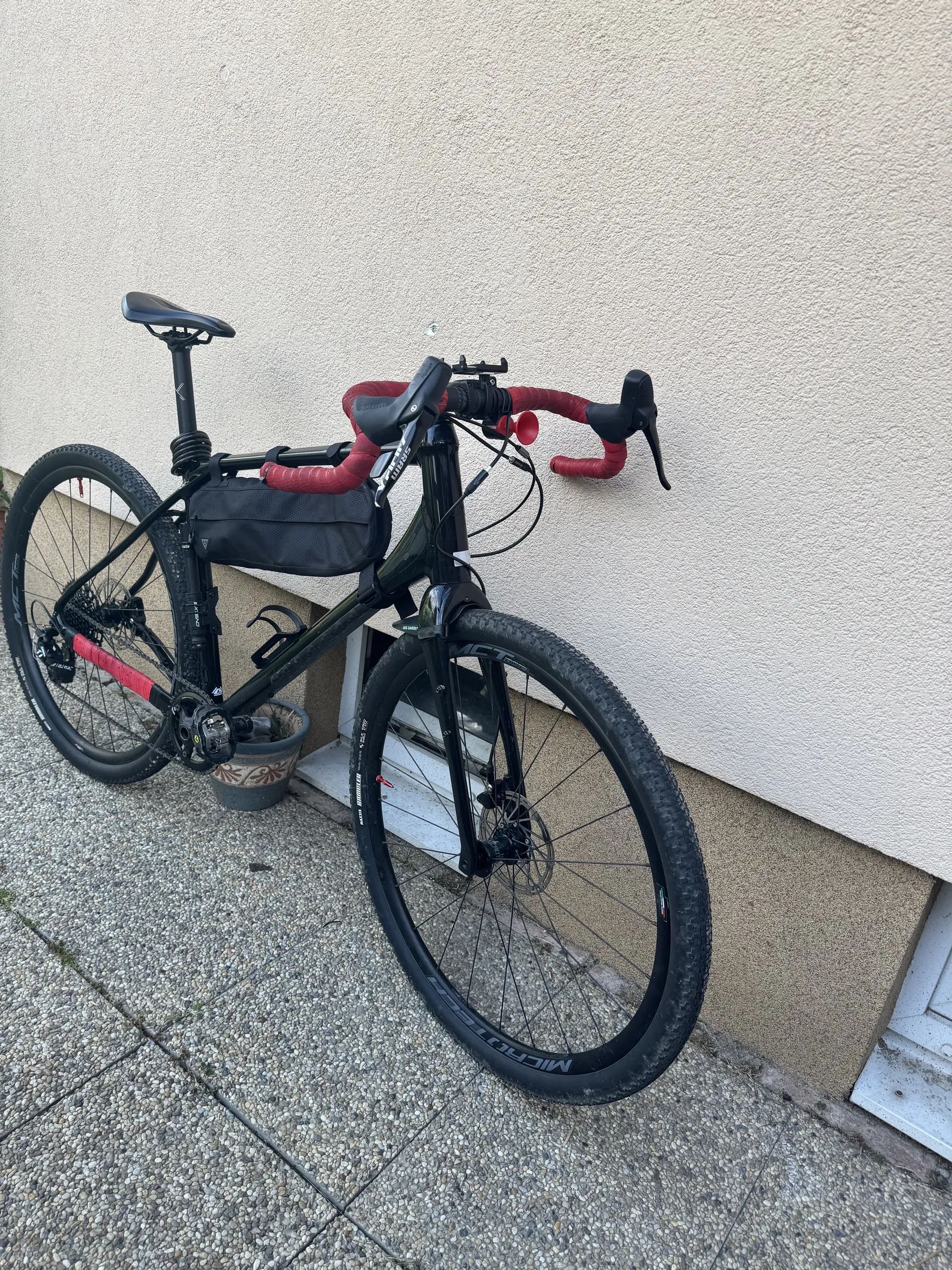 Merida Silex 600 – SRAM Apex 1×11 – top stav, najeto jen 674 km Gravel ve výborném stavu, komplet osazení SRAM Apex (řazení, brzdy, kliky). Rám hliník, karbonová vidlice, hydraulické kotoučovky. Upgrady: – řídítka Ritchey VentureMax V2 – omotávky Lizard Skins 3.2 mm – pláště Maxxis Rambler 700×45C – bezdušové ventilky Force – ochranný polep rámu - mam i dalsi brasny na riditka a pod sedlo jeste nerozbalené Topeak a ramova je pouzivana. Vsechny tri za 3.000,- .