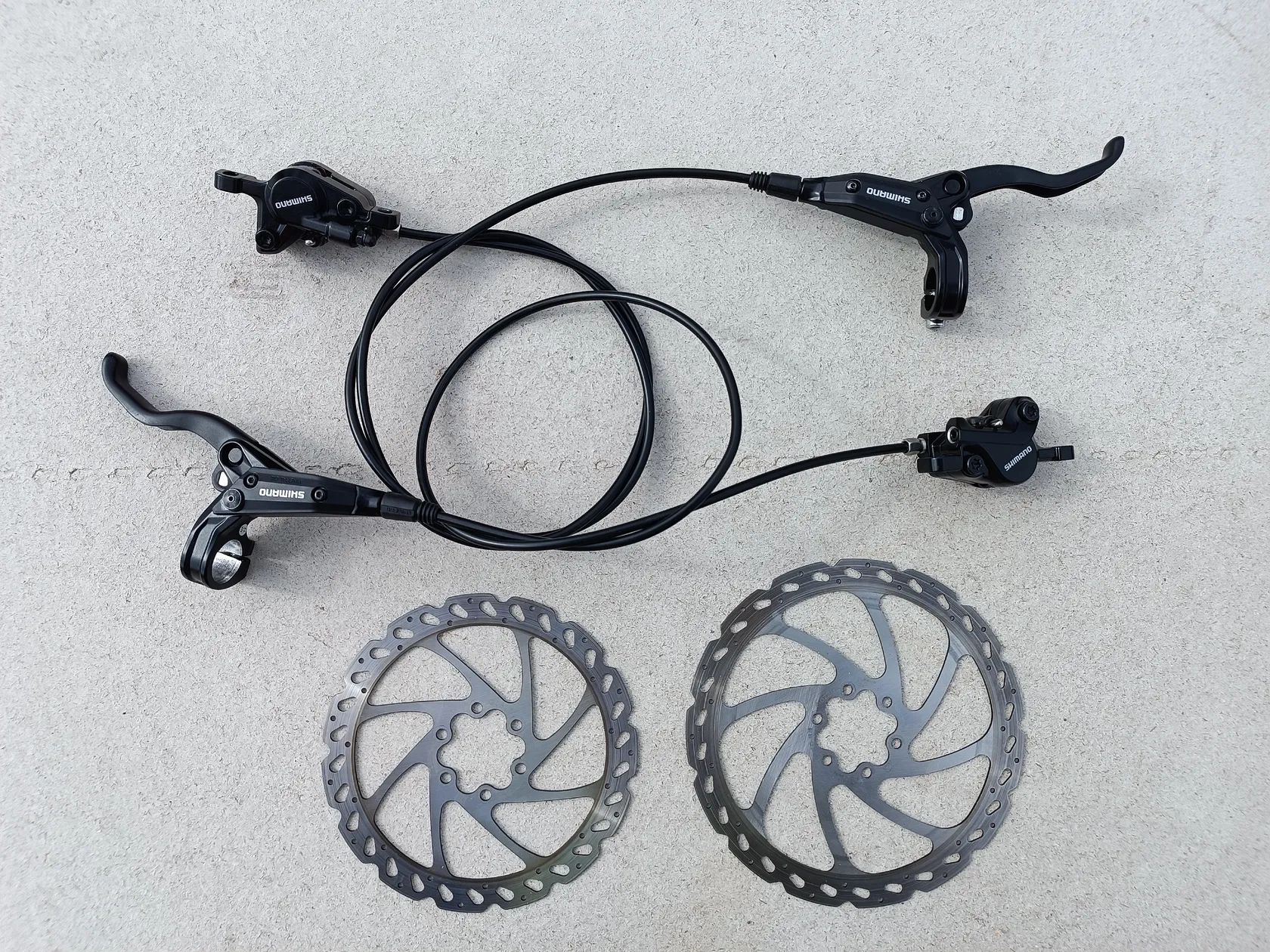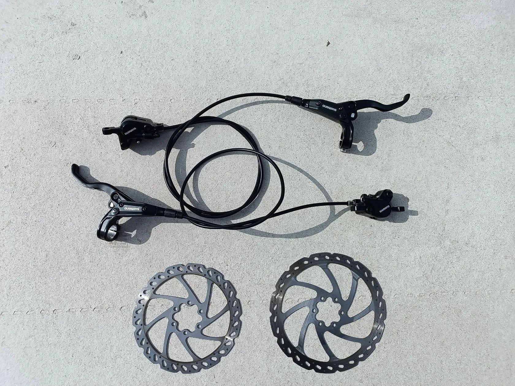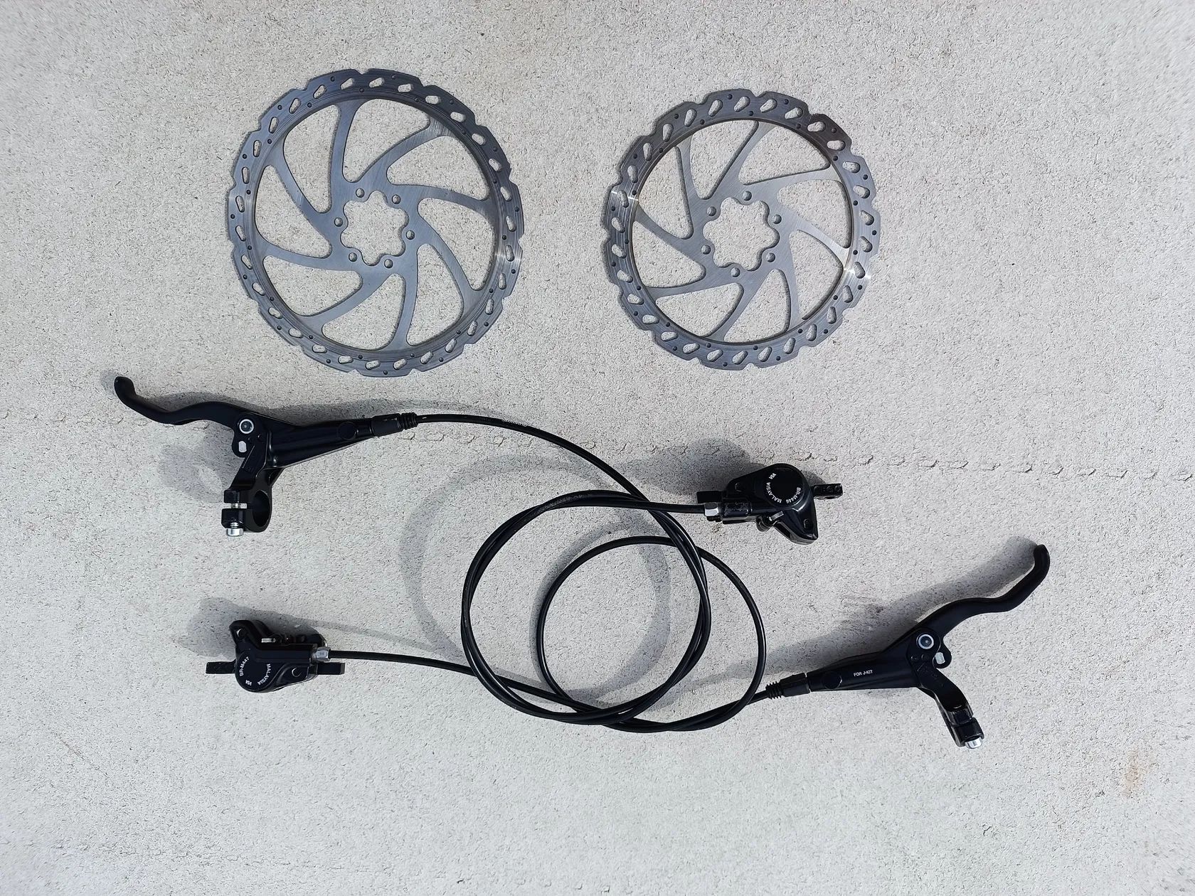 Prodám v perfektním stavu hydraulické brzdy Shimano M447. Včetně kotoučů,šroubů a přírubou.