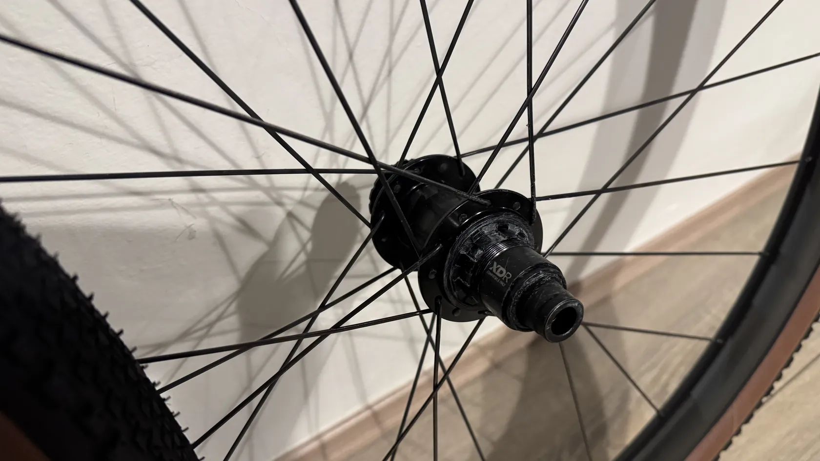 Ráfek je 45 mm vysoký s vnitřní šířkou 23 mm a vnější 27 mm a je možné použít pláště v šíři od 28 do 50 mm. Centrlock. Osy klasika 12mm. Ořech XDr (asi dohledám i Shimo)