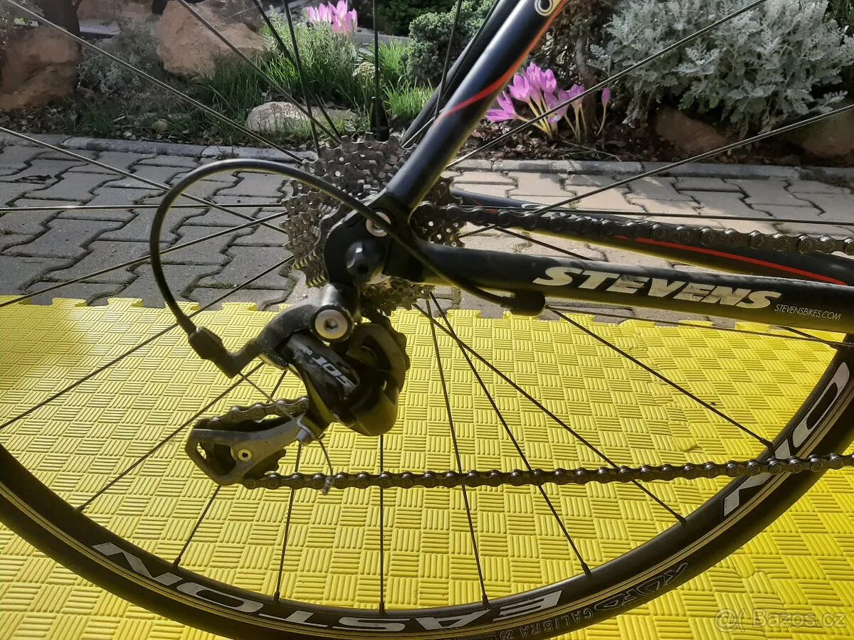 Prodám silniční kolo Stevens kompletně vybavené Shimanem 105, ideálni na postavu do 162 cm, délka sedlové trubky 53cm střed - vršek, délka horní rámové trubky střed - střed 52 cm. Vpředu trojpřevodník, kazeta 10 převodů. Kolo je ve velice dobrém stavu. Poslední dobou používané pouze na trenažeru.