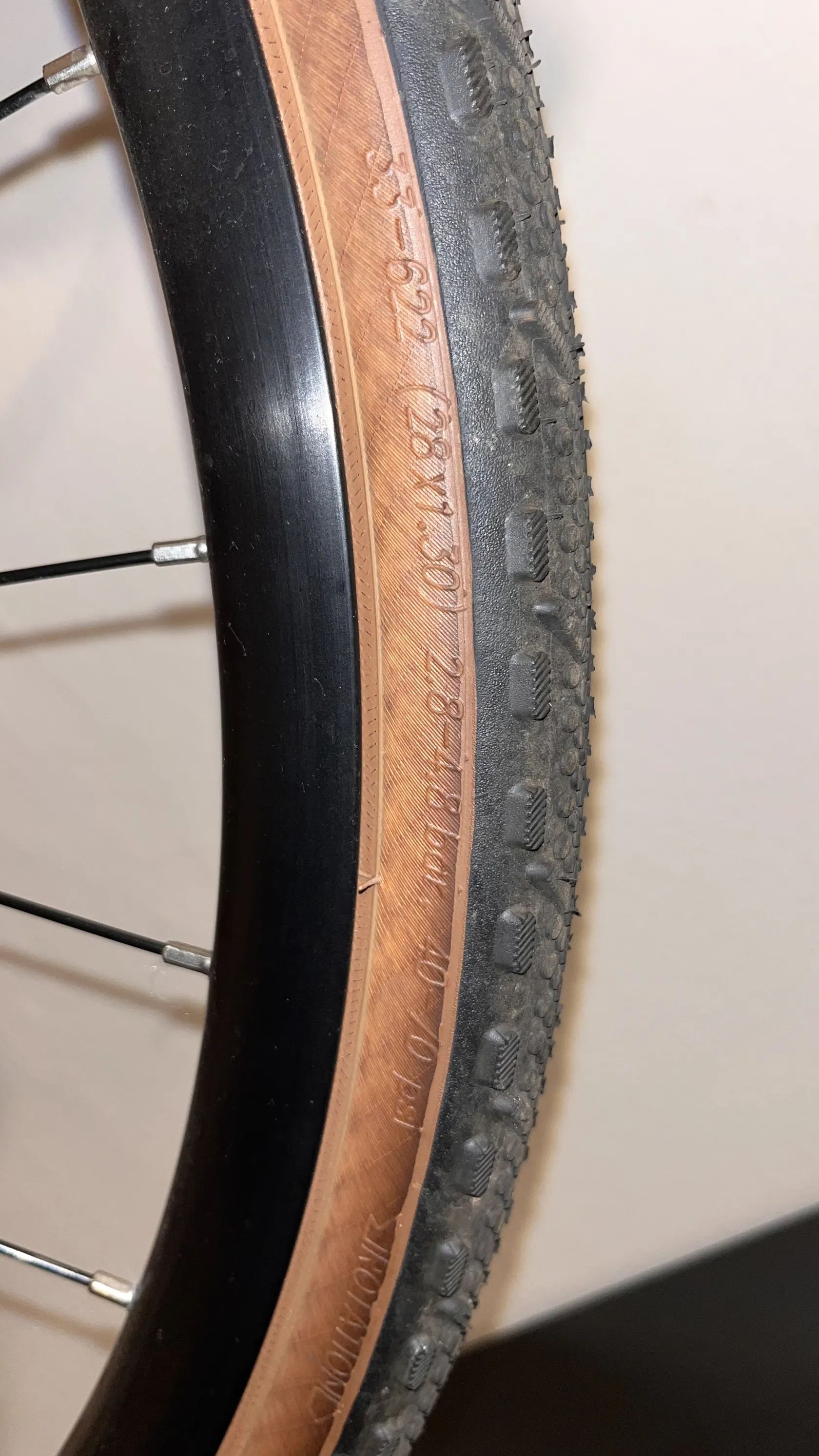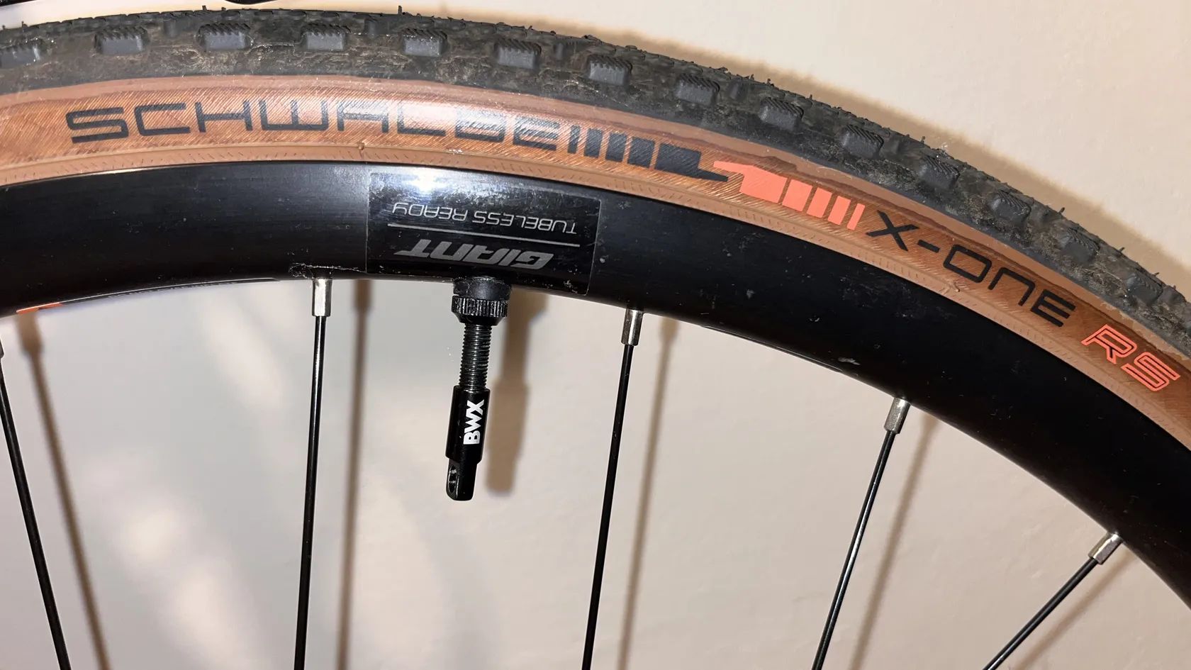 náhradní pláště WTB a Vittoria (šířka 36 mm) + tmel – vhodné pro bezdušové použití