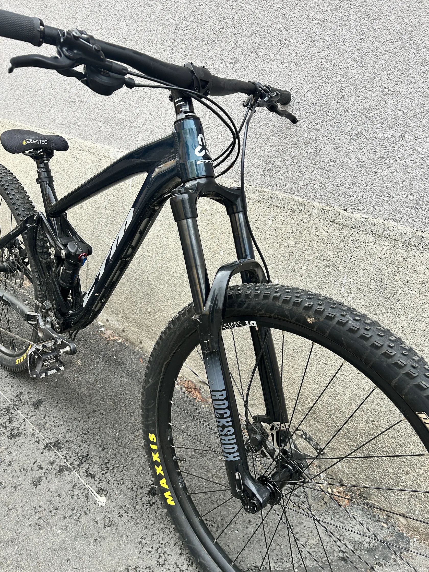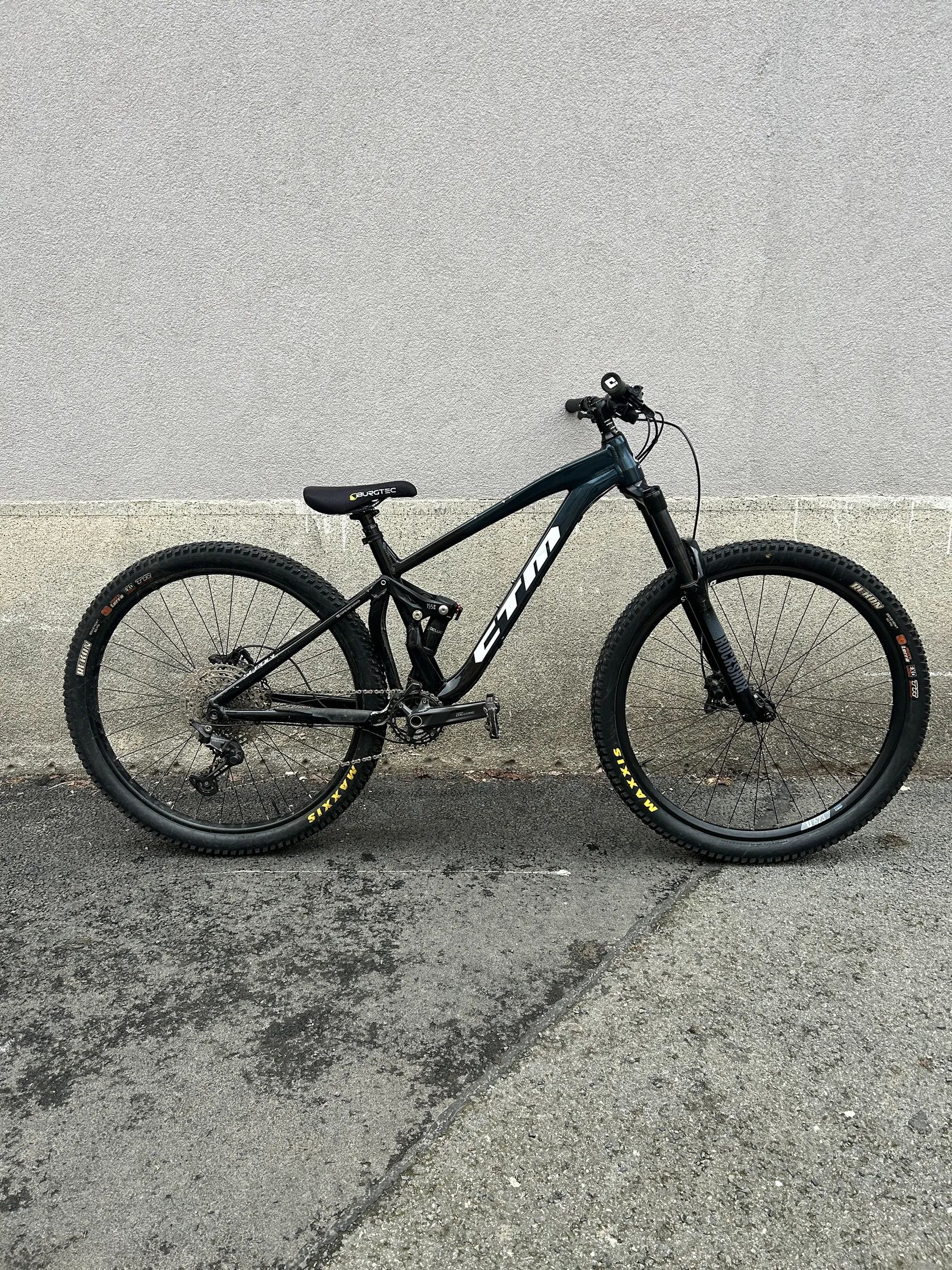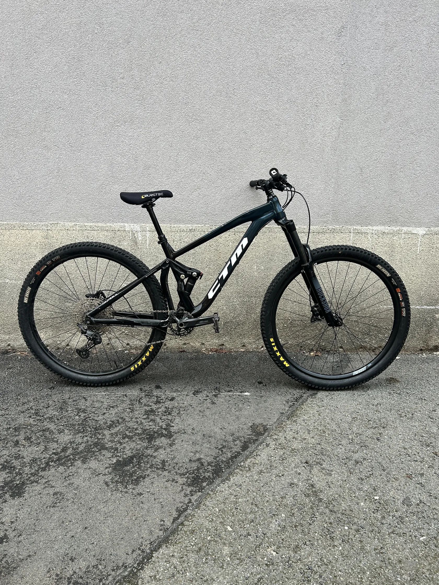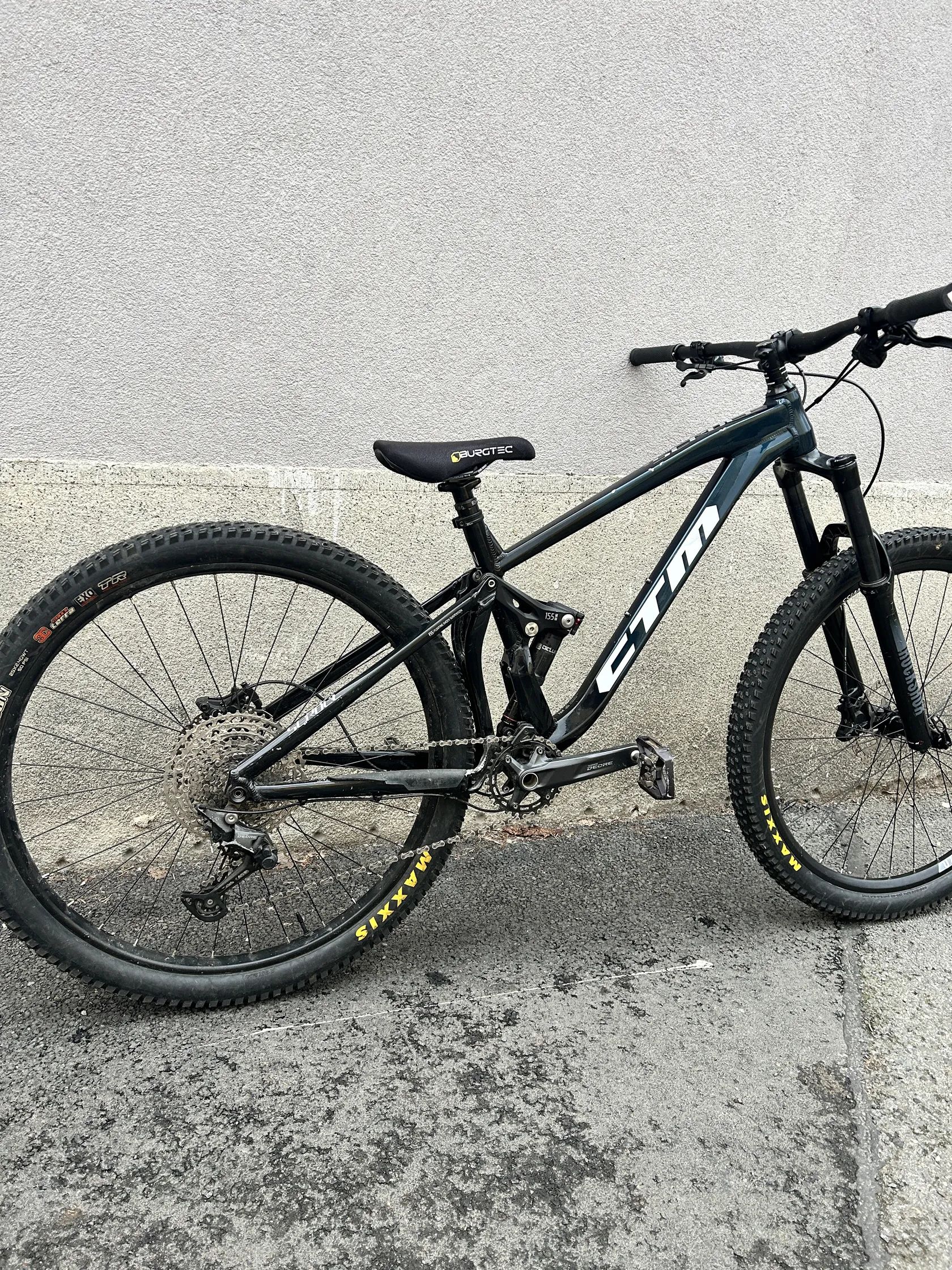 Prodám nové trail kolo CTM Scroll v perfektním stavu — malo najeto, jezdeno výhradně rekreačně na trailech. 🧾 Koupeno nové za 45000 Kč — doklad o koupi k dispozici 📍 Pár drobných provozních škrábanců, jinak bezchybný stav Komponenty: ✅ Vidlice: RockShox 160mm ✅ Tlumič: RockShox Deluxe ✅ Řazení: Shimano Deore XT 1×12 ✅ Brzdy: Shimano MT400 ✅ Zadní kolo: Shimano ✅ Přední ráfik: DT Swiss — nový ✅ Sedlovka: nová ✅ Teleskopická sedlovka: nová