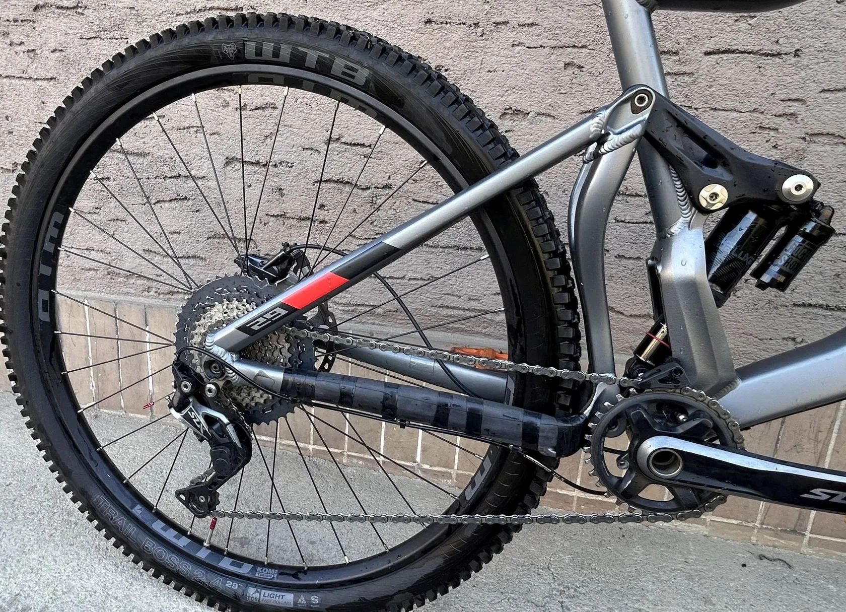 Nový řetěz a nové pláště WTB Trail Boss + Vigilante – kolo připravené k jízdě bez nutnosti okamžitých investic.