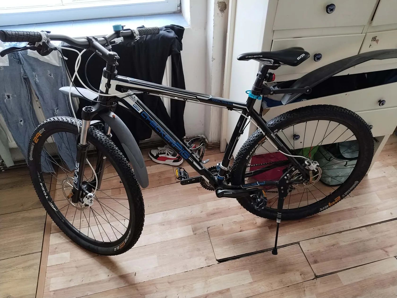Prodám horské kolo Checker Pig Cool Pig 29 v zánovním stavu. Kolo bylo jeté jen minimálně, je bez škrábanců a technicky ve stavu nového kusu. Ideální pro někoho, kdo chce kvalitní německé kolo bez nutnosti dalších investic. Parametry a výhody: Stav: Zánovní, vše původní, seřízené a čisté. Převody: 9 rychlostí (přesné a rychlé řazení). Pláště: Široké 2.2" s plným vzorkem (skvělá trakce a pohodlí). Kola: 29 palců – moderní standard pro rychlou a stabilní jízdu. Bonus: sportovní blatníky,stojánek na pití a Stojka v ceně. Kolo je připravené na sezónu, stačí nasednout a jet. Nutno vidět, vypadá skvěle! Předání: Osobní odběr Karlovarský kraj Při rychlém jednání SLEVA