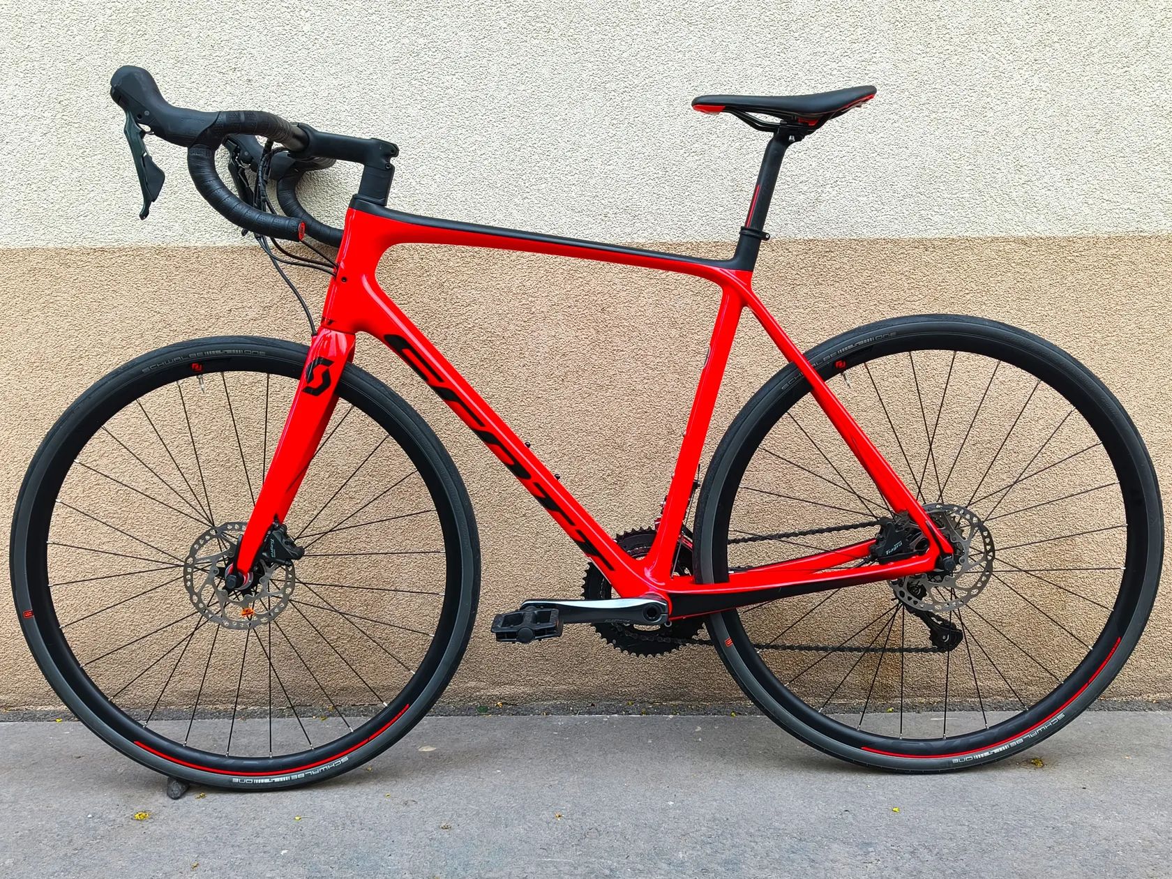 Kola Syncros Race 24 Disc, pláště Schwalbe ONE 700×30C – rychlé, komfortní, s rezervou do horšího povrchu.