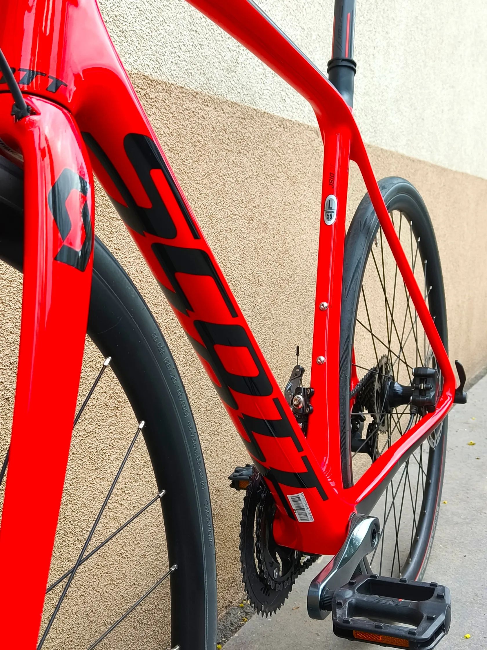 Prodám parádní rychlou carbonovou silničku s hydraulickými kotoučovými brzdy švýcarského výrobce SCOTT, model Addict 30, ročník 2020. Velikost Rámu je L/56, vhodné na postavu cca 175 - 187 cm. Na fotkách seřízeno zhruba na 178 cm. Stav kola: Kolo je technicky v perfektním, spíše zánovním stavu, najeto do 600 km. Rám má 1 miniškrábaneček na zadní stavbě (viz poslední fotka), jinak v bezvadném stavu. Skvěle řadí a brzdí díky hydraulickým kotoučovým brzdám. Řetěz bez známek opotřebení. Seřízeno a připraveno na novou sezónu bez nutnosti další investice Zaměření kola: Jedná se o silniční kolo s endurance geometrii, tedy spíše pohodlnější univerzální silnička pro hobby jezdce, která díky tuhému carbonovému rámu a pěkným moderním komponentům nebude nikde zaostávat. Kolem vidlice a v oblasti rámu je dost prostoru, je tedy možnost použít i lehčí gravel pláště a kolo používat ještě univerzálněji. Díky hydraulickým kotoučovým brzdám kolo skvěle brzdí, takže sjezdy z kopců a nebo i jízda v lehčím terénu nebo na cyklostezkách je krásně na jistotu a člověk ví, že vždy dobře a včas zabrzdí. Výbava: Rám: Carbonový, HMF Carbon, pevné osy Vidlice: Carbonová Brzdy: Hydraulické kotoučové brzdy Shimano Tiagra, kotouče 160/160 mm Pohon: 2x10 Přehazovačka: Shimano Tiagra RD-4700 Kazeta: Shimano CS-HG500, rozsah 11 - 32 zubů Kliky: Shimano Tiagra FC-4700 50/34 zubů Ráfky: Syncros RACE 24 Disc Náboje: Formula Team Disc Pláště: Schwalbe ONE kevlar, 700x30C Sedlo, sedlovka, představec, řídítka seriové od Syncros