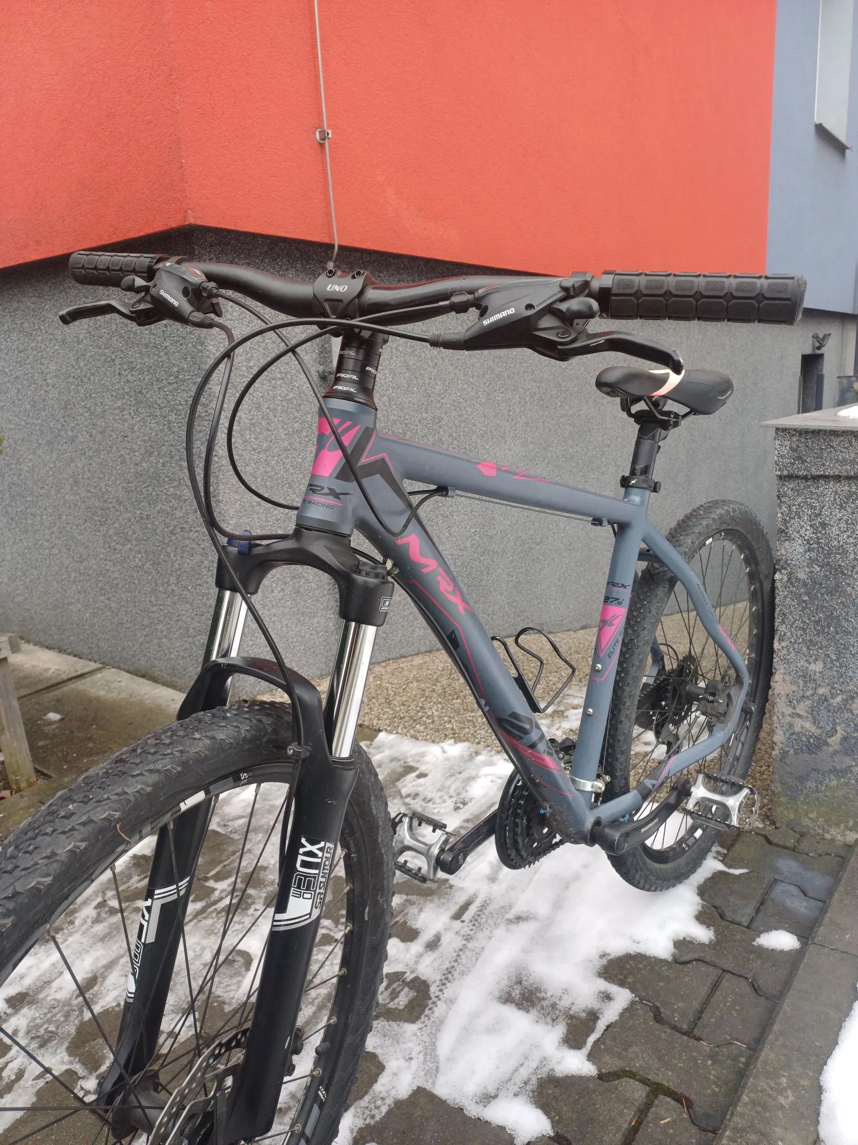 Kolo má pár drobných škrábanců z běžného používání, ale nic vážného – plně funkční, bez nutných investic. Stačí sednout a jezdit. Vhodné pro rekreační ježdění